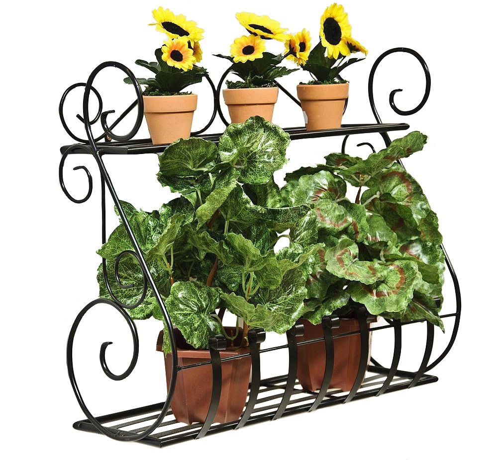 Dank seiner beiden Ablageflächen eignet sich dieser Blumenhalter besonders für mehrere kleine Pflanzen, Töpfe oder sogar