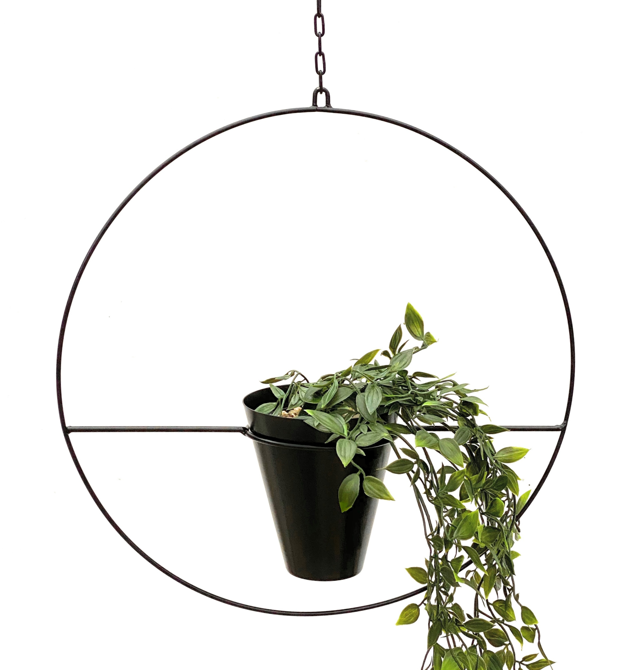 Dekorativer Pflanzenhänger mit integriertem Topf und Eisenkette für Drinnen und Draußen geeignet, im Industrial Look.