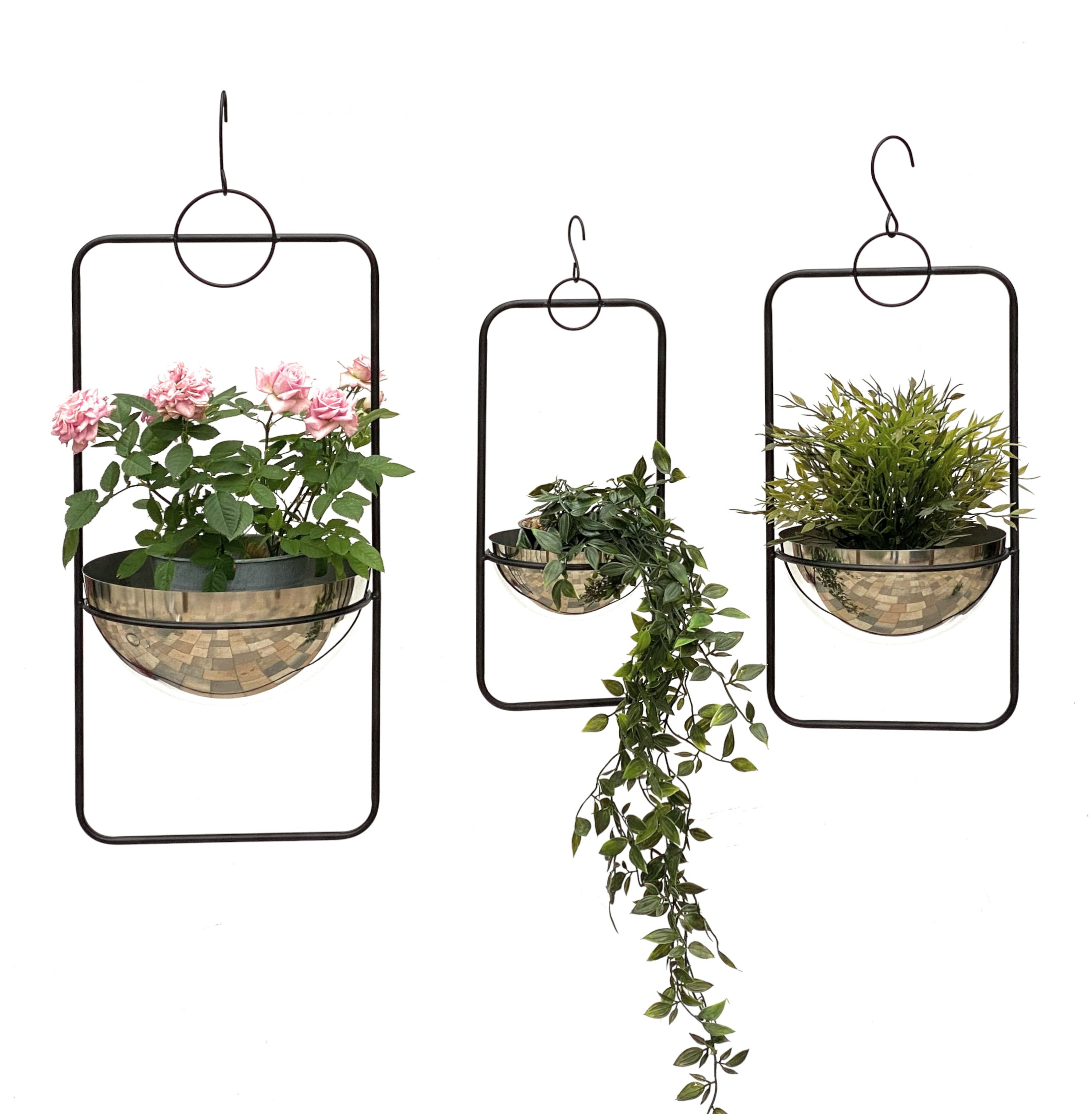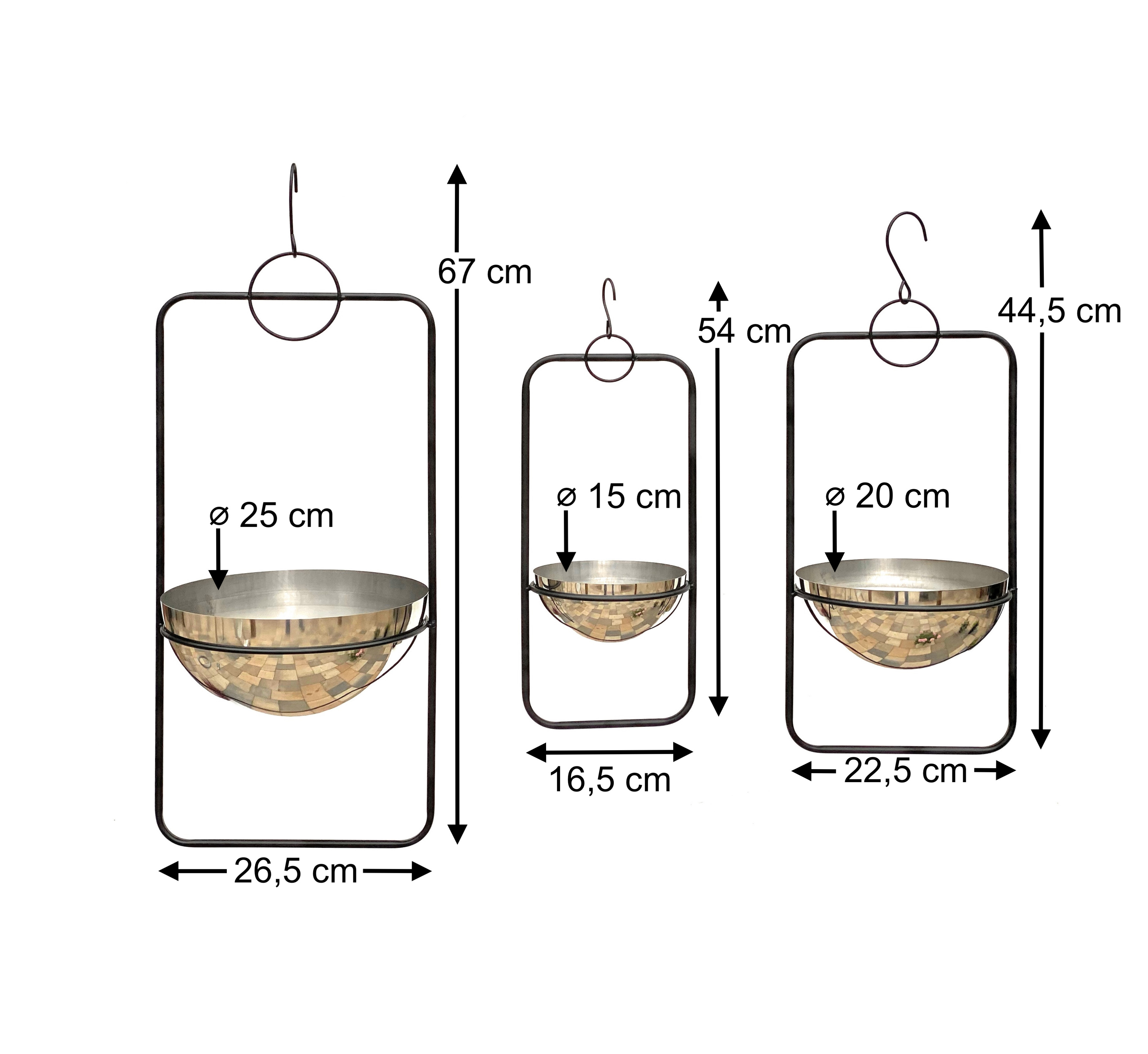 Dekoratives Pflanzenhänger 3er Set mit Schalen und Haken für Drinnen und Draußen geeignet, im Vintage Look.