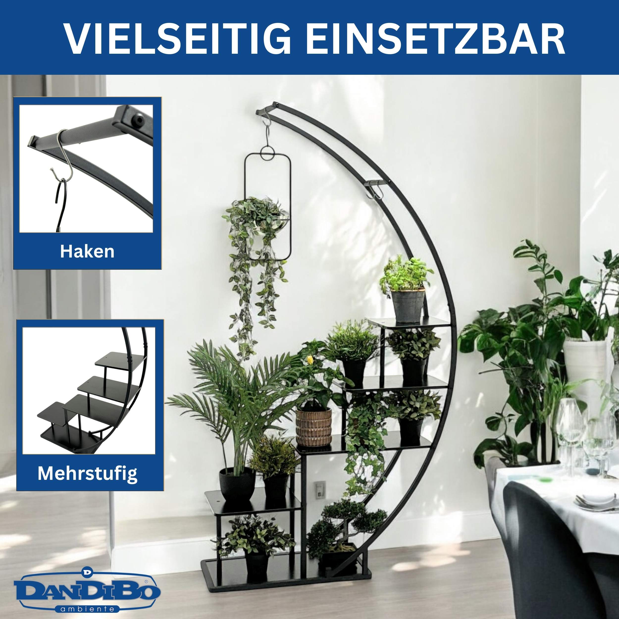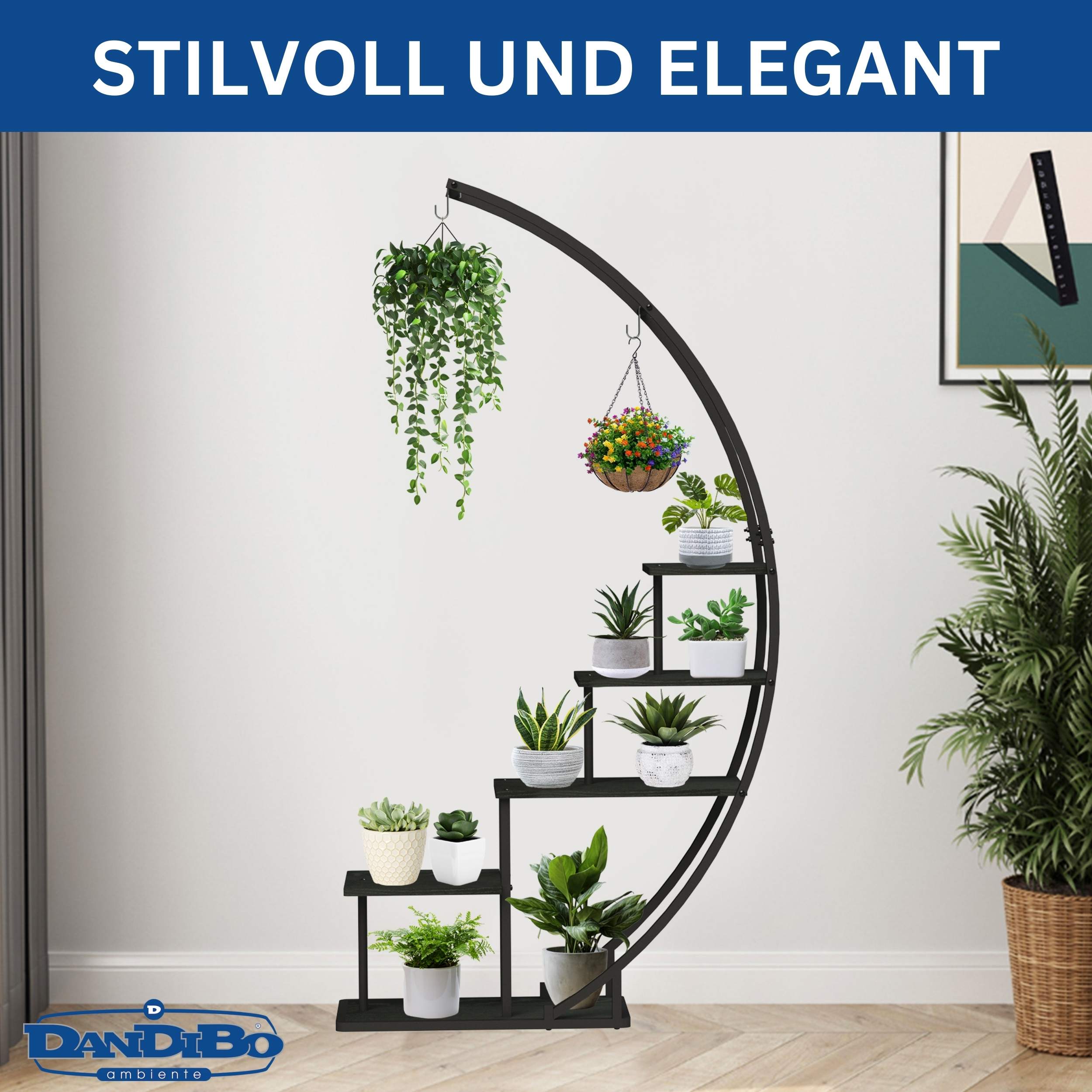 ELEGANTES DESIGN: Das geschwungene, mondförmige Design dieser Pflanzenleiter verleiht jedem Raum eine moderne und elegante Note. Ideal für Wohnzimmer, Esszimmer oder Veranda, um Ihre Pflanzen stilvoll zu präsentieren.<br>