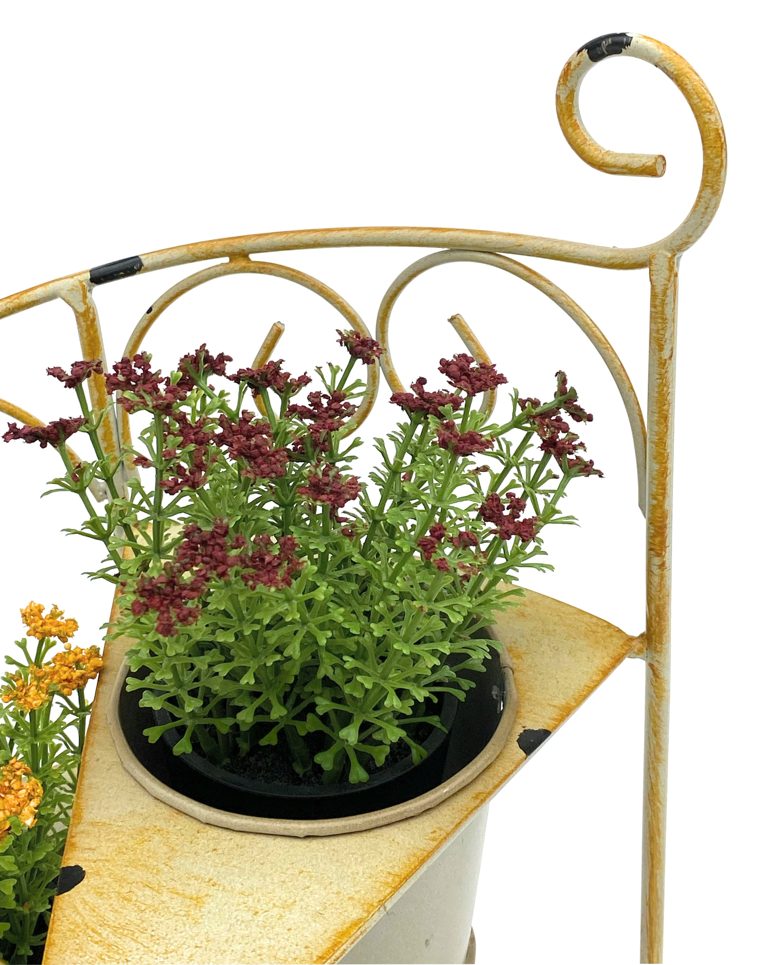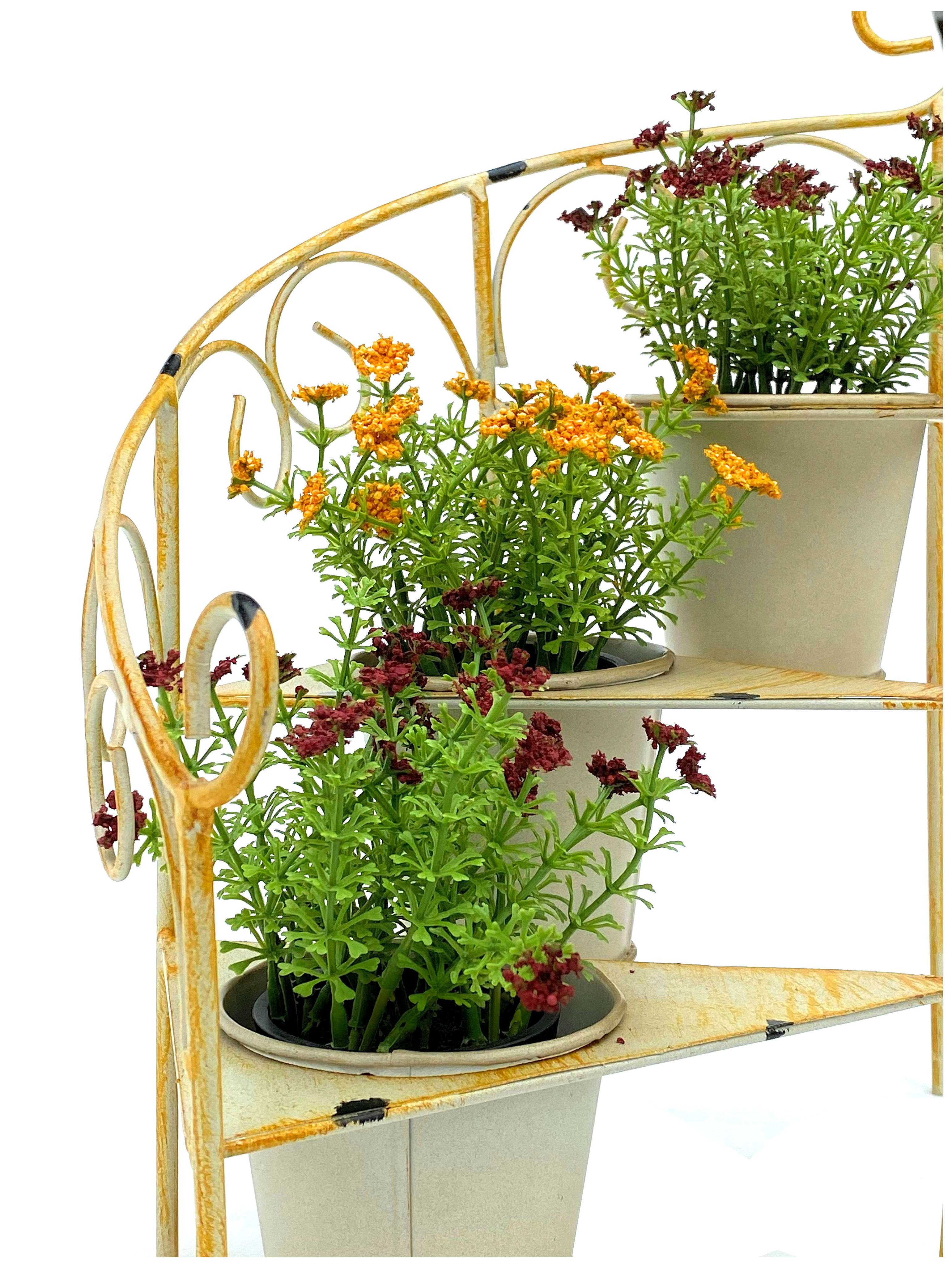 Stabile und dekorative Blumentreppe mit drei Ablagen und Töpfen für Ihre Pflanzen, Blumentöpfe, Kräuter oder Sukkulenten.