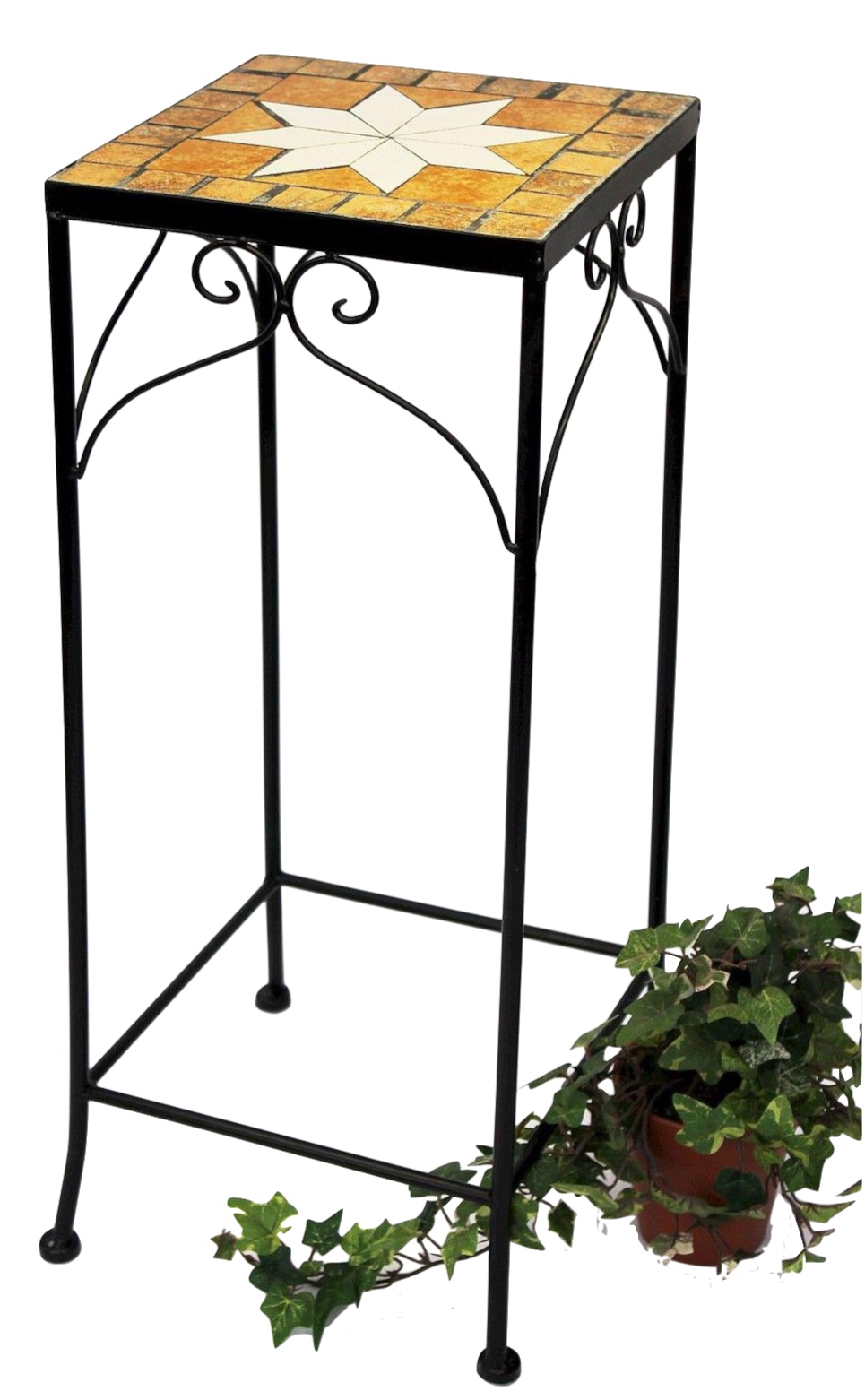 Stabiler und dekorativer Blumenhocker mit einer Ablage aus Steinmosaik für Ihre Pflanzen, Blumentöpfe oder Vasen.