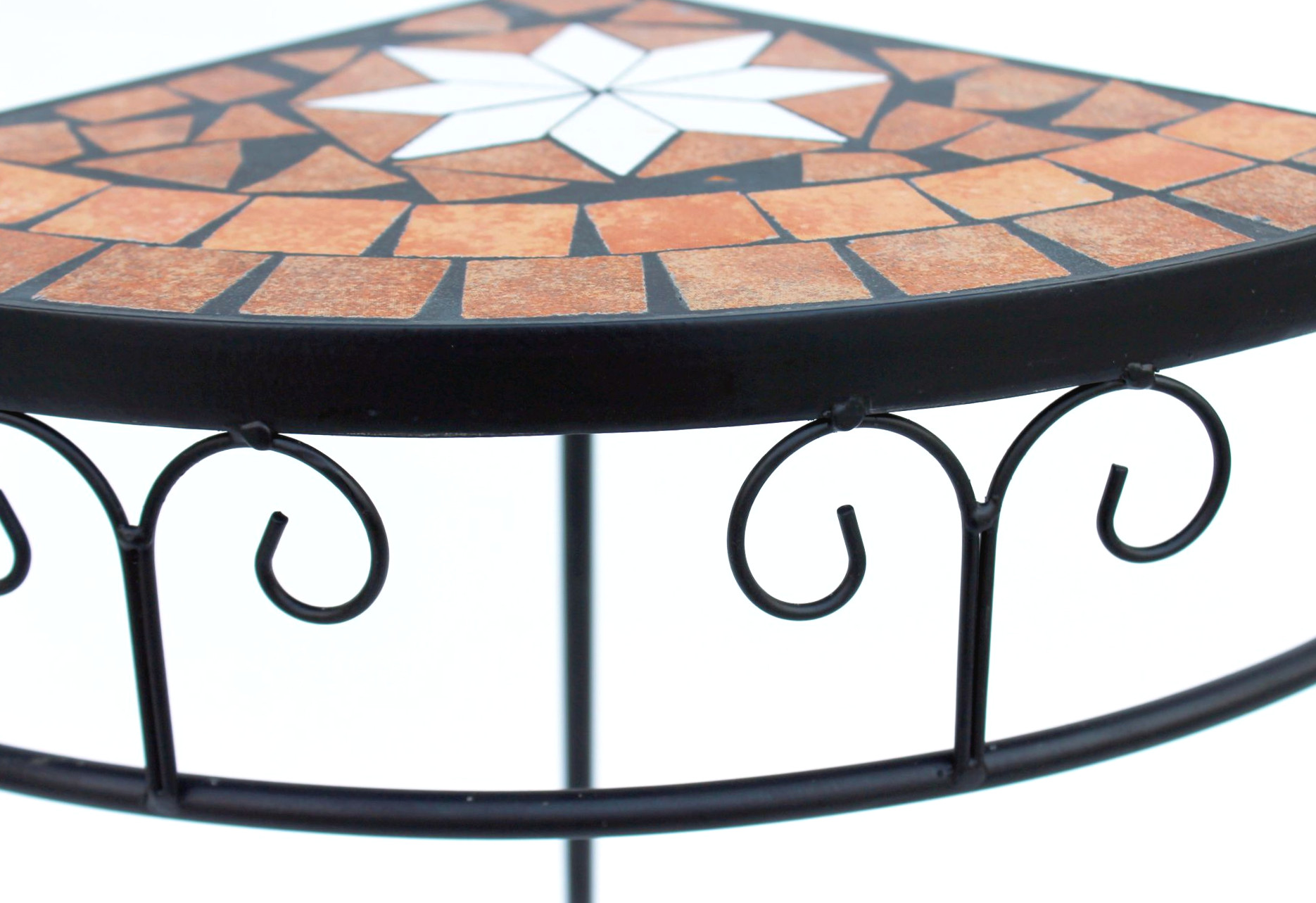 Gestellfarbe Schwarz, Mosaikablage in verschiedenen Terrakotta Farben.