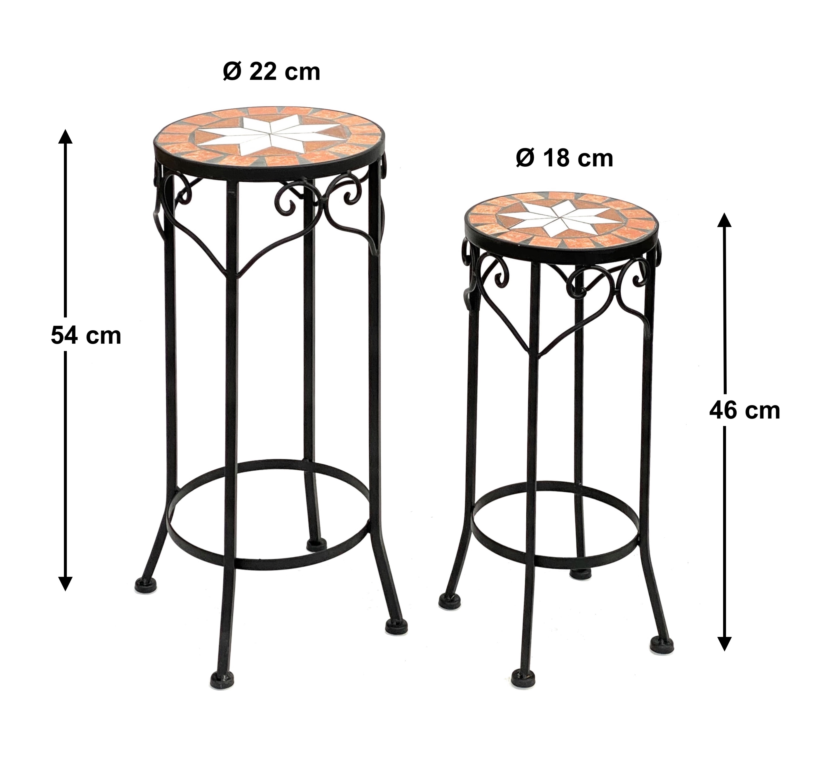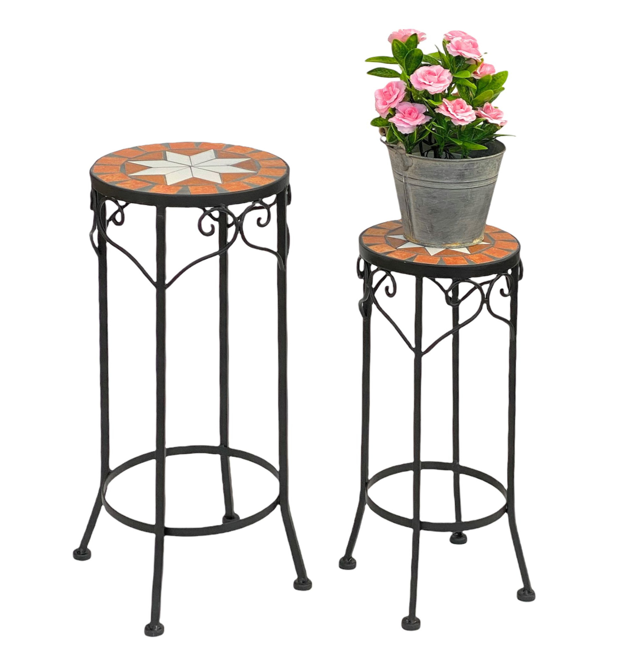 Blumenhocker Merano Mosaik 2er Set 12011 Blumenständer 46 und 54cm Hocker Rund