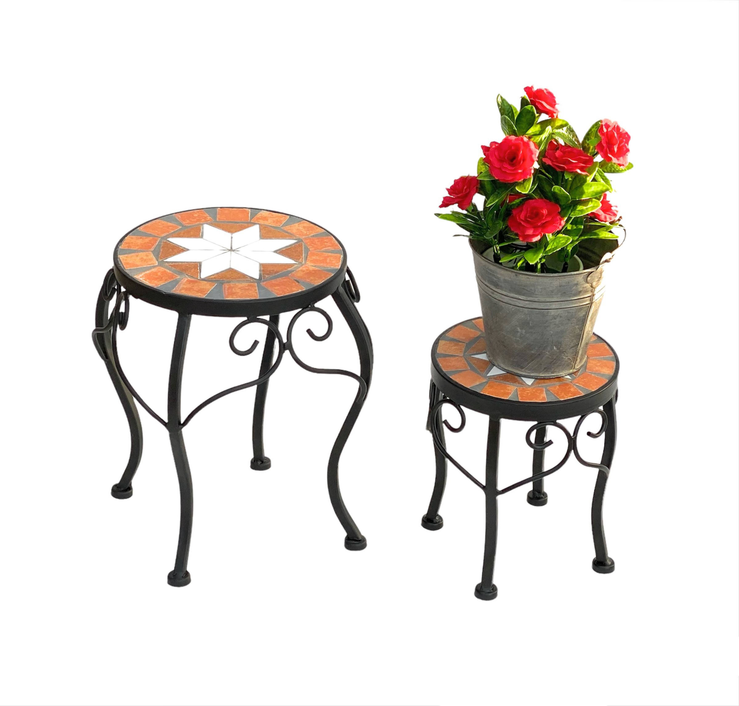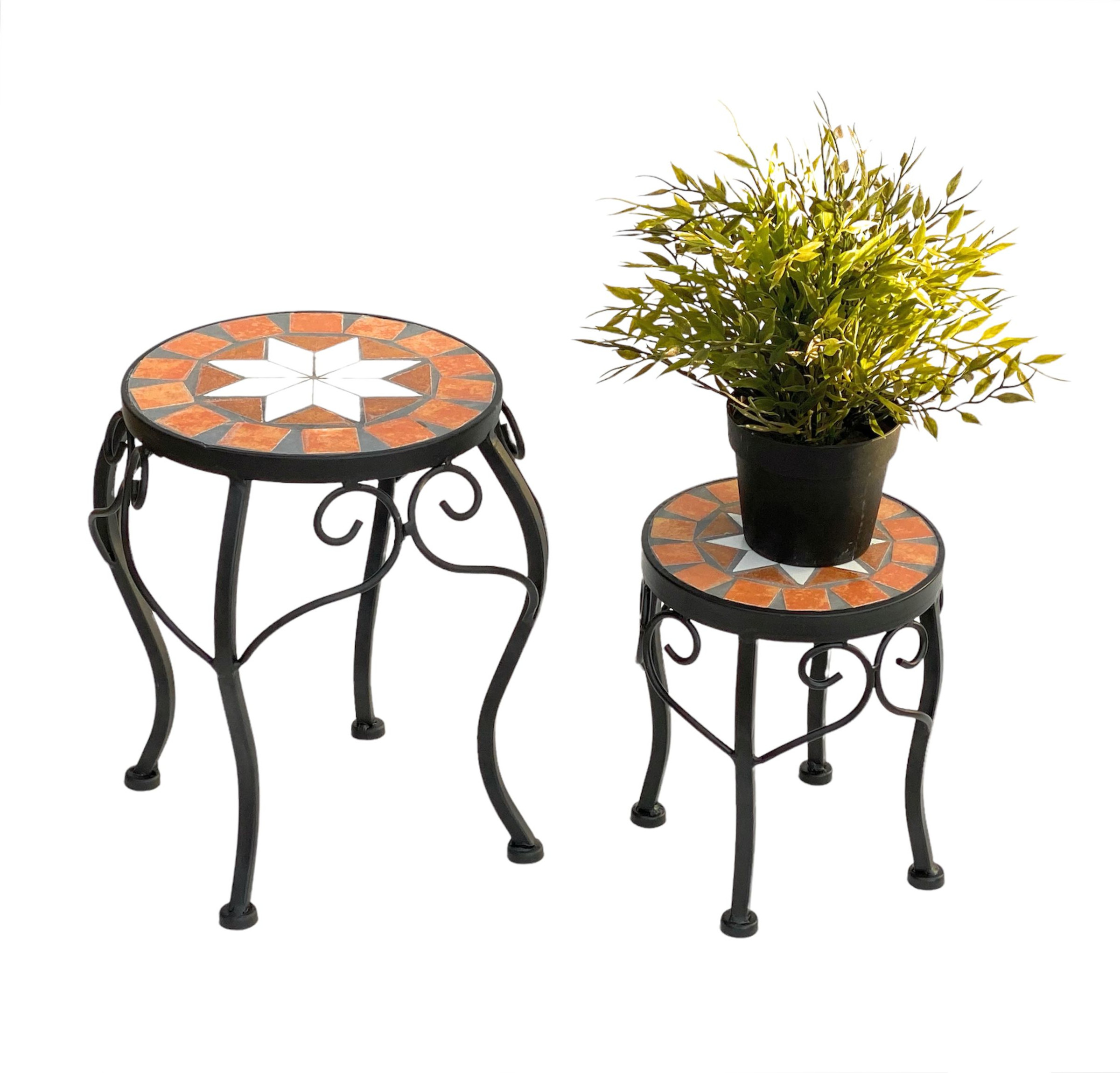 Blumenhocker Merano Mosaik 2er Set 12014 Blumenständer 20 und 27cm Hocker Rund