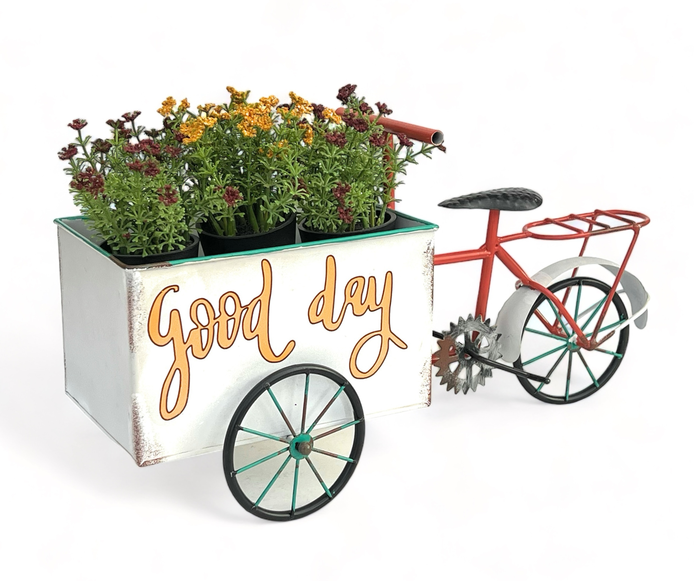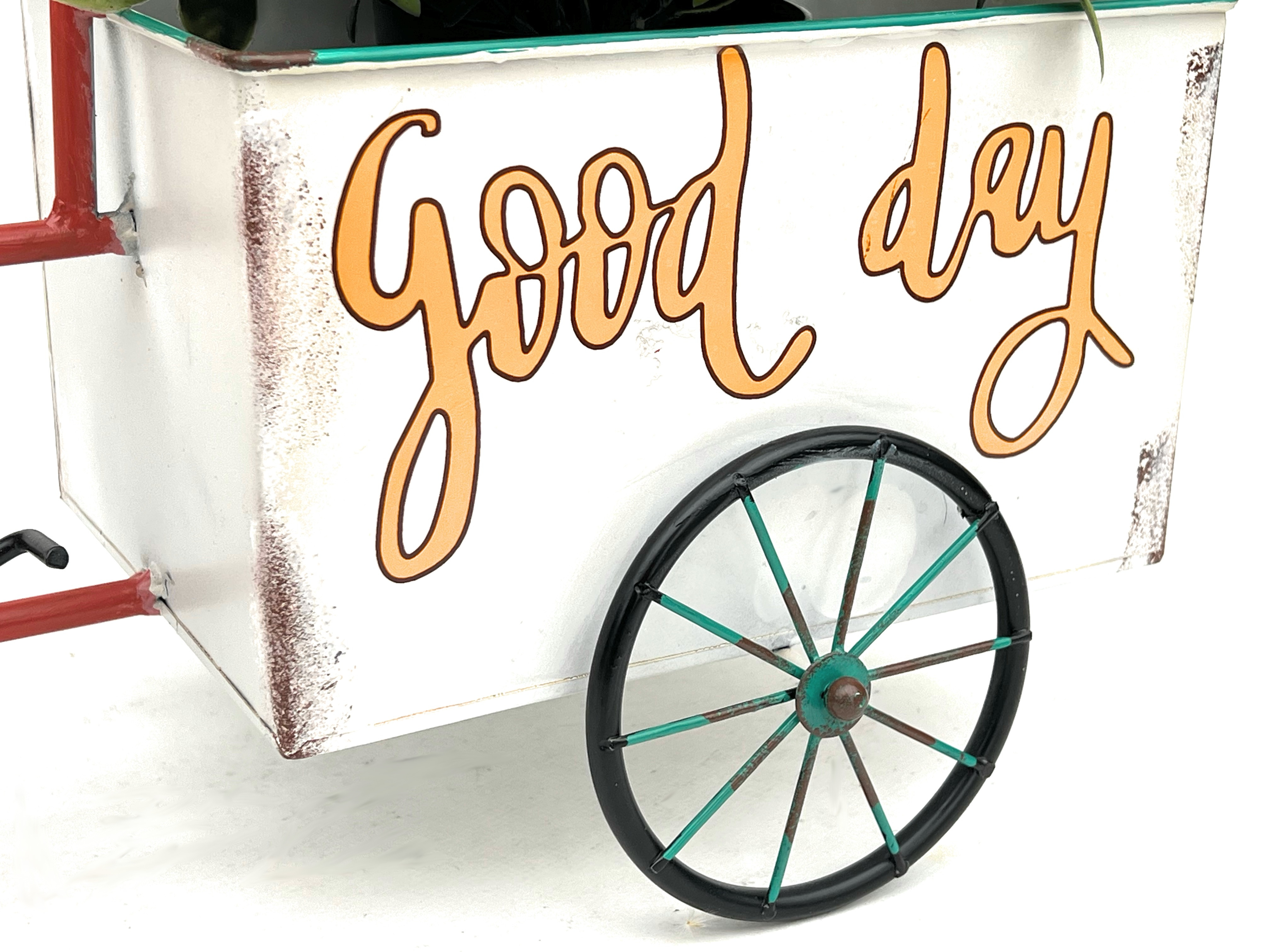 ROBUSTE KONSTRUKTION - Unser Dekofahrrad "Good Day" ist aus Metall gefertigt, dass für eine Langlebigkeit und Stabilität sorgt. Die stabile Konstruktion gewährleistet, dass Ihre Pflanzen sicher und geschützt stehen können.