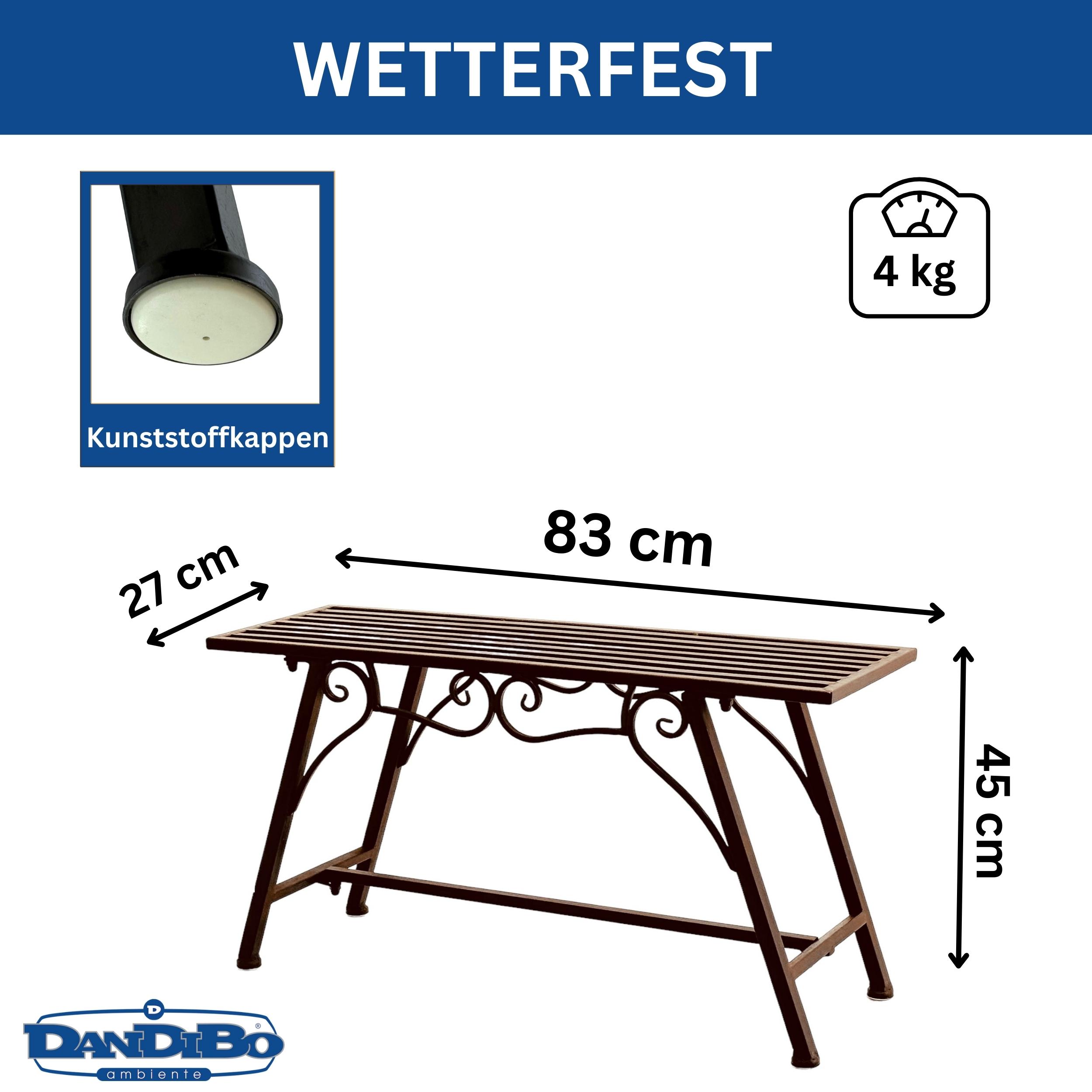 PRAKTISCHE ABMESSUNGEN: Breite 83 cm, Tiefe 27 cm, Sitzhöhe 45 cm. Farbe: Braun