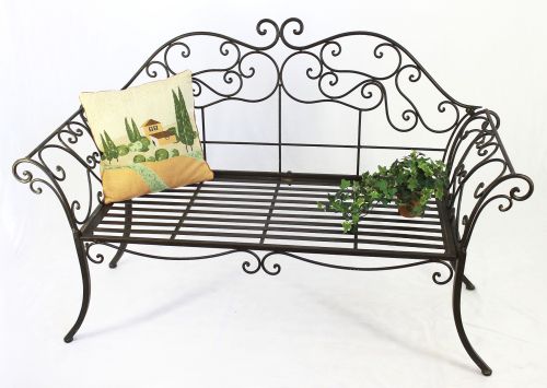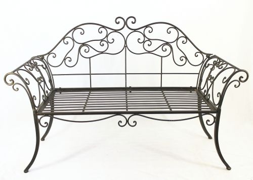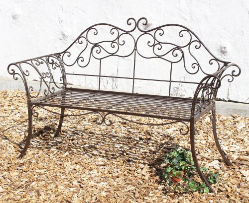 Romantische Gartenbank aus Schmiedeeisen gefertigt und somit sehr stabil.