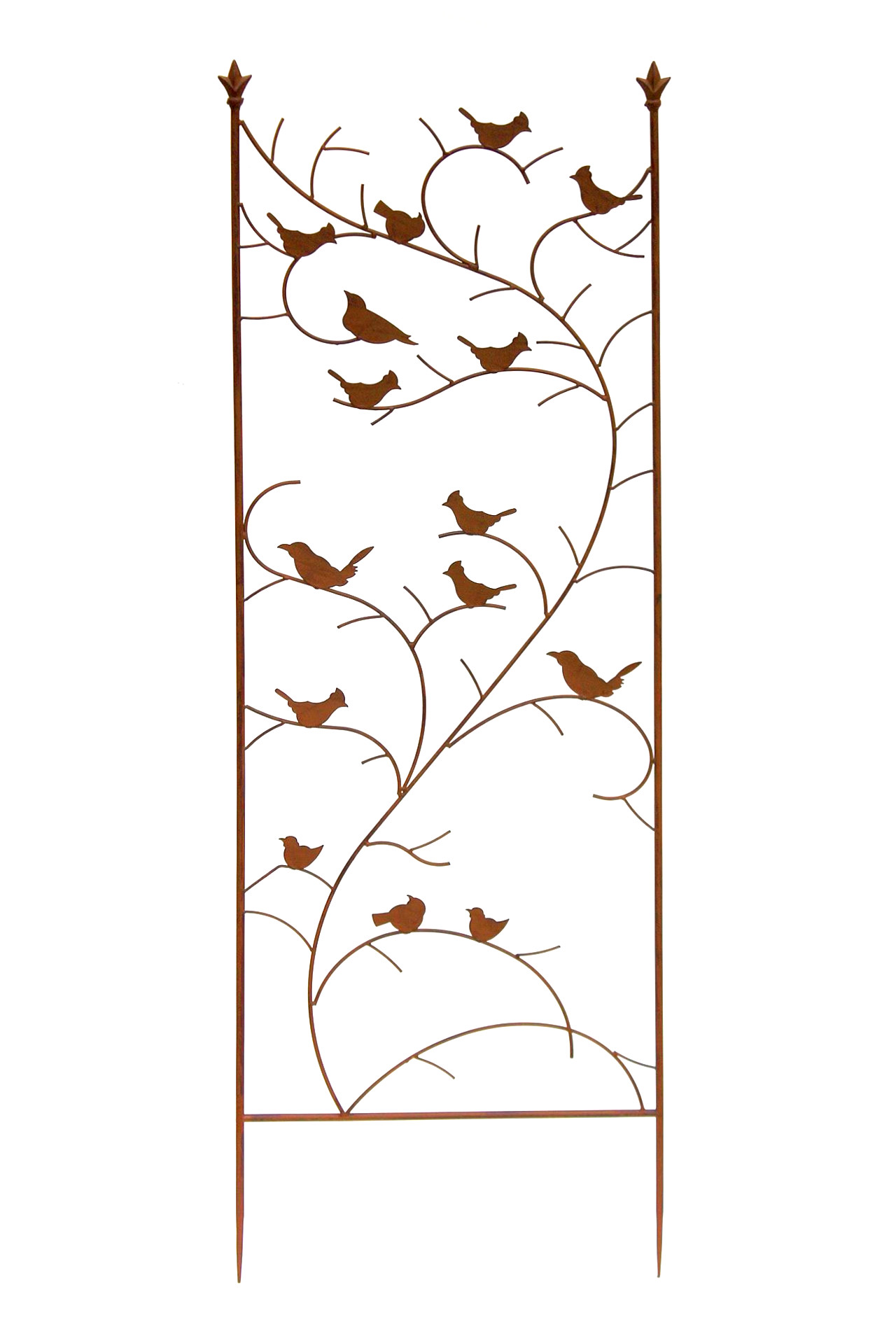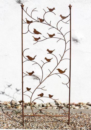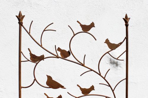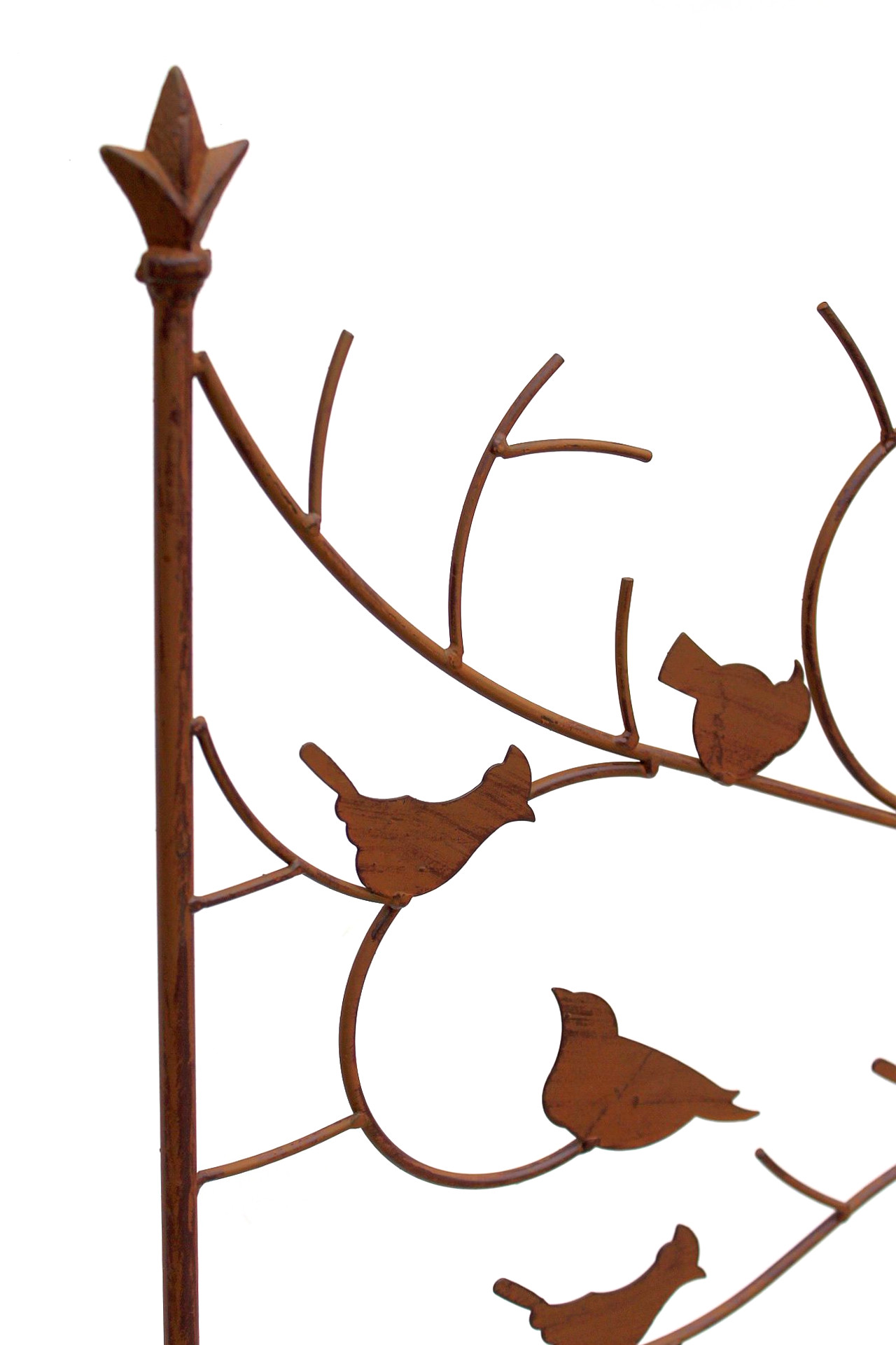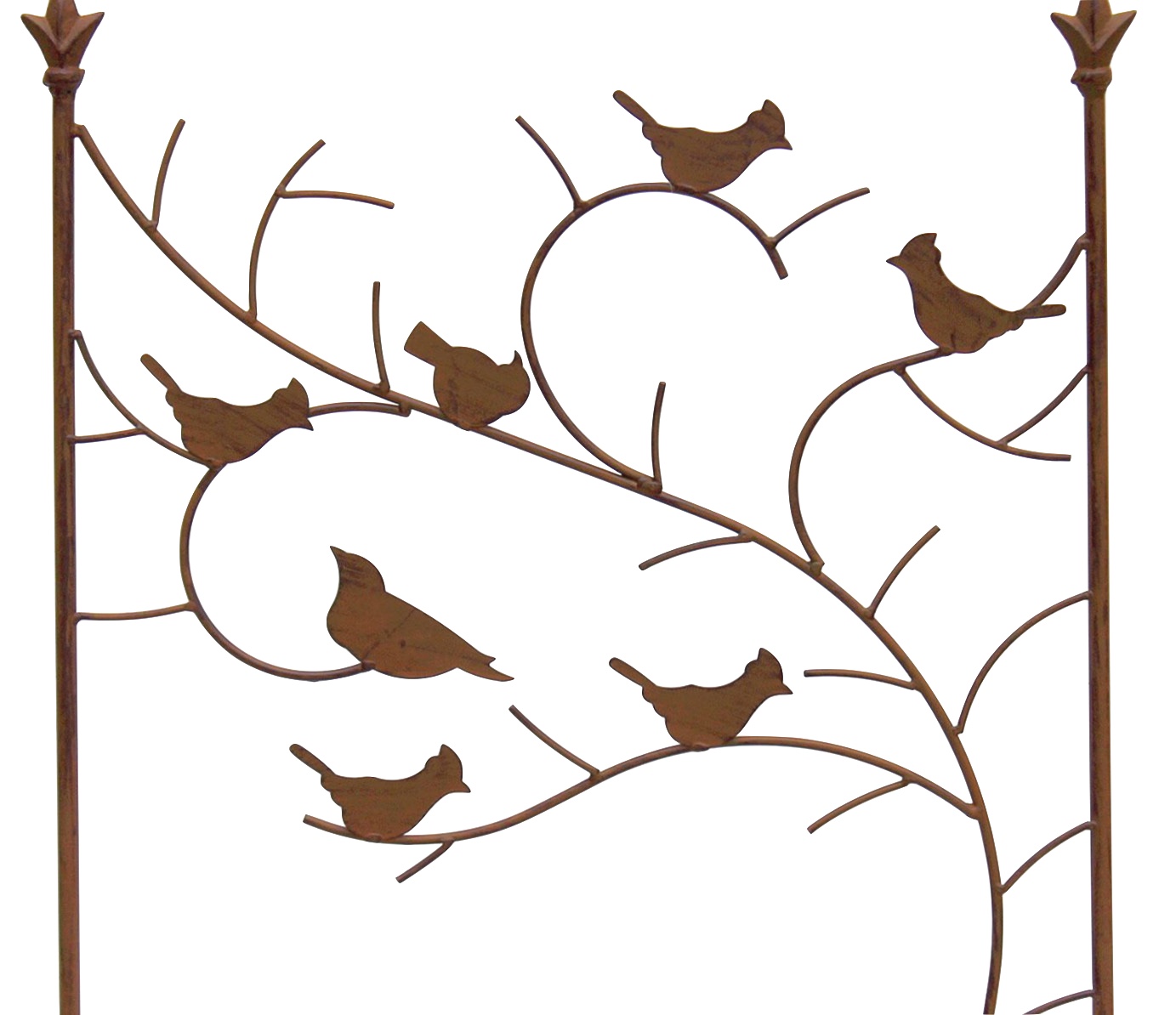 Aus Metall geschmiedet und mit einem geschwungenen Rankmuster mit 15 kleinen Vögel als Dekoration.