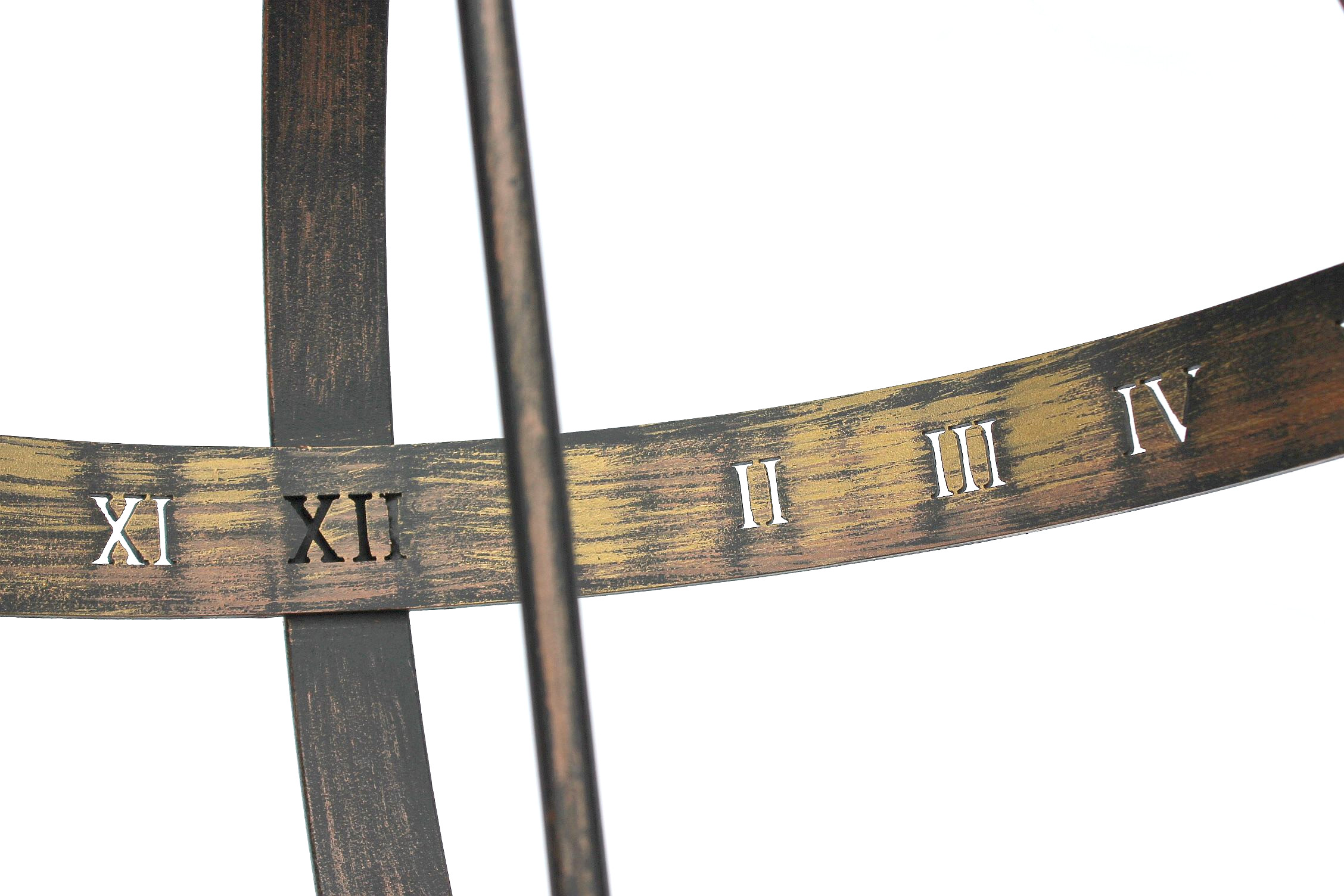 Die Sonnenuhr ist aus Metall geschmiedet und aufwändig verziert.