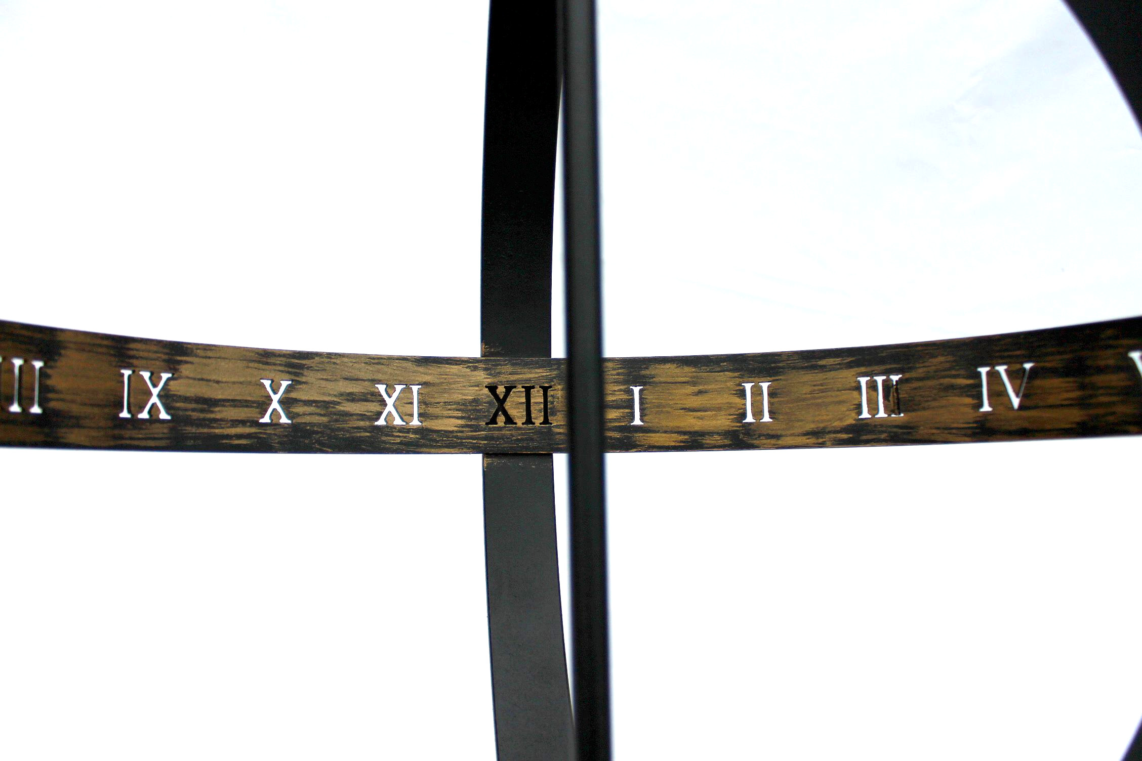 Die Sonnenuhr ist aus Metall geschmiedet und aufwändig verziert.