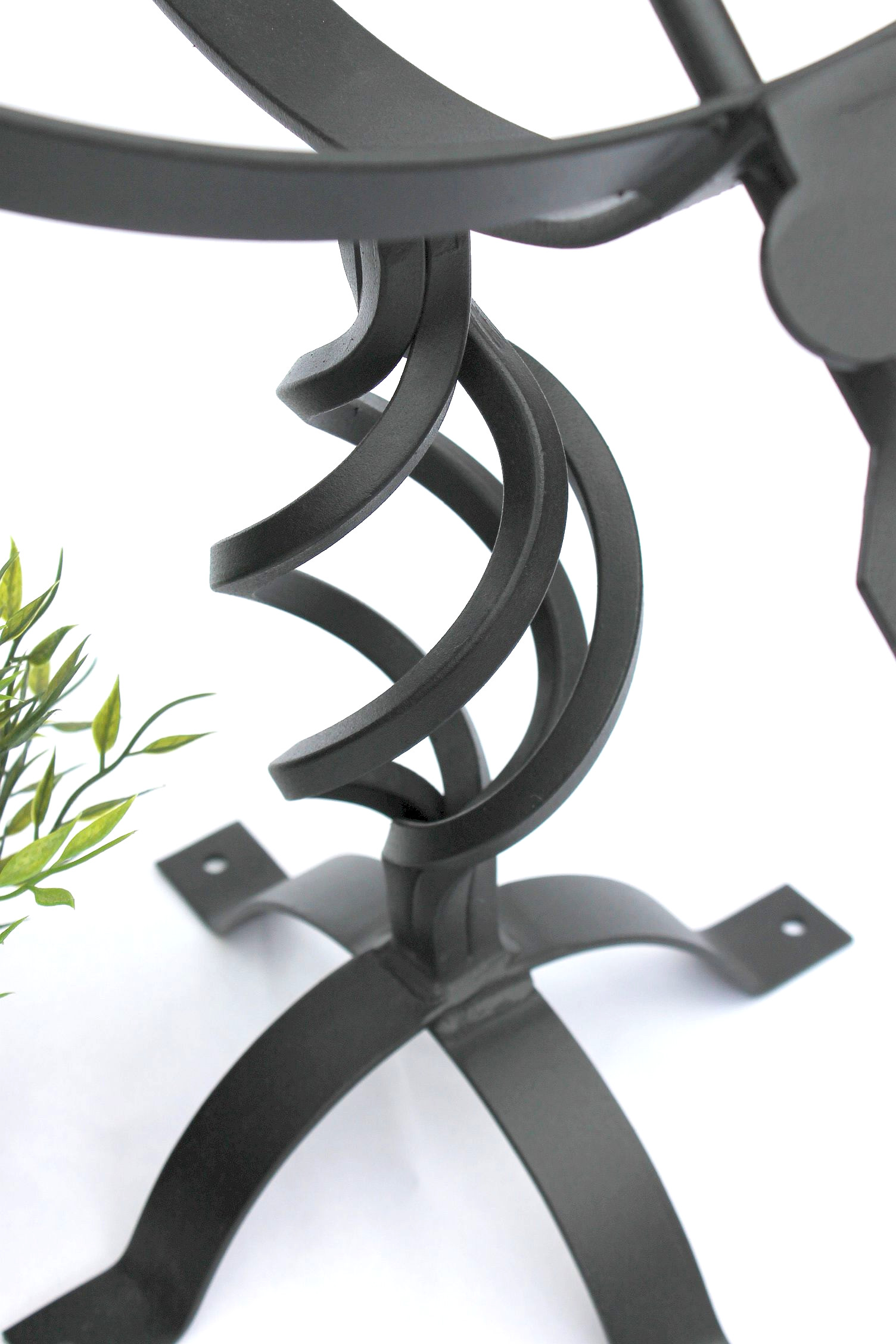 Die Uhr ist fest verschweißt und daher sehr stabil und wackelfrei. Für eine mögliche Bodenbefestigung sind Bohrlöcher in den Füßen.