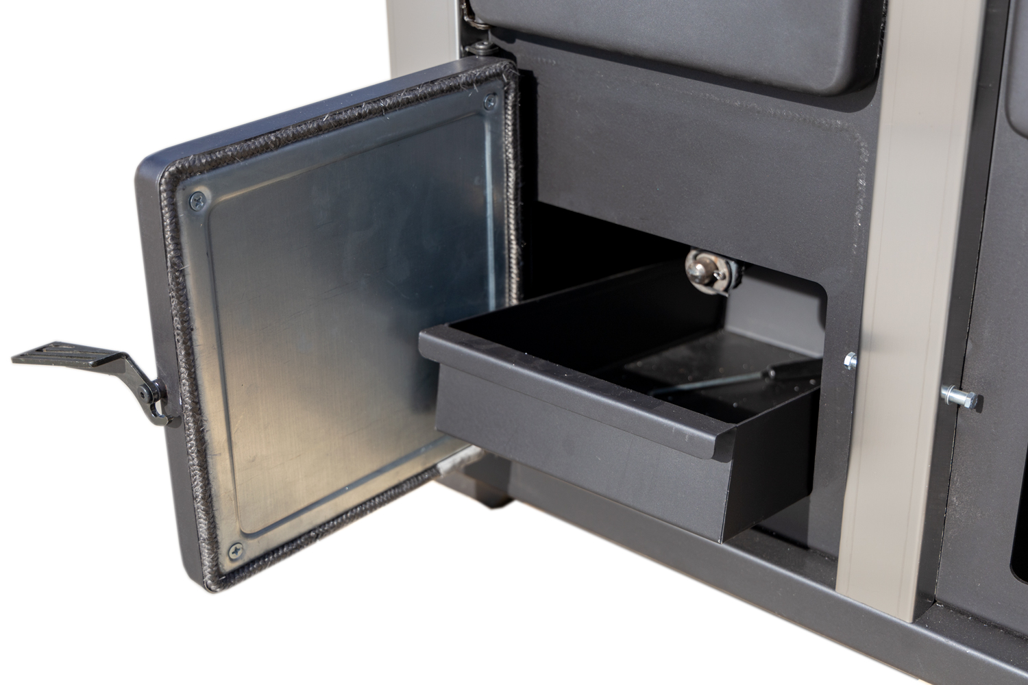 Somit fällt die Asche vom Rost direkt in das Aschefach und kann direkt bequem entnommen werden.