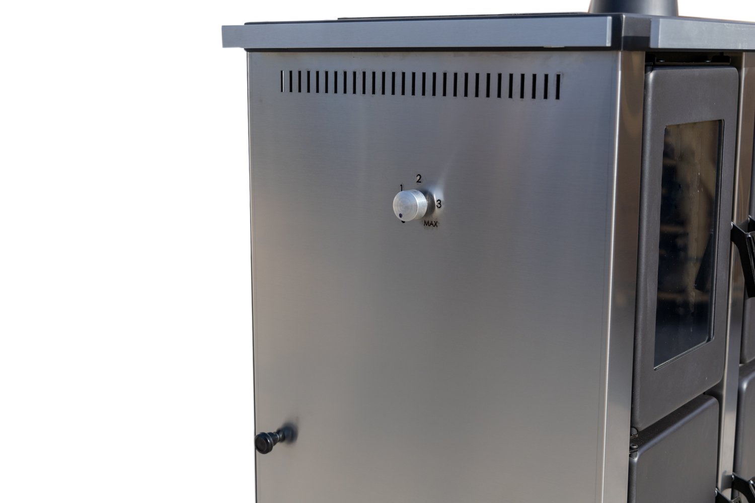 Das mechanische Thermostat, welches die Temperatur automatisch nach Stufen regelt, ist ein richtiges Highlight. Dieser regelt die Temperatur im Brennraum. Dadurch reduziert sich der Brennstoffverbrauch und Sie sparen Energie.