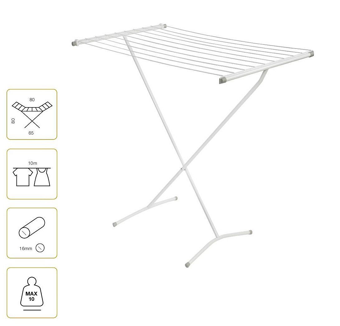 Dank seiner unauffälligen und leichten Bauweise fällt dieser Wäscheständer kaum auf und lässt sich ebenso leicht nach dem Zusammenklappen verstauen.