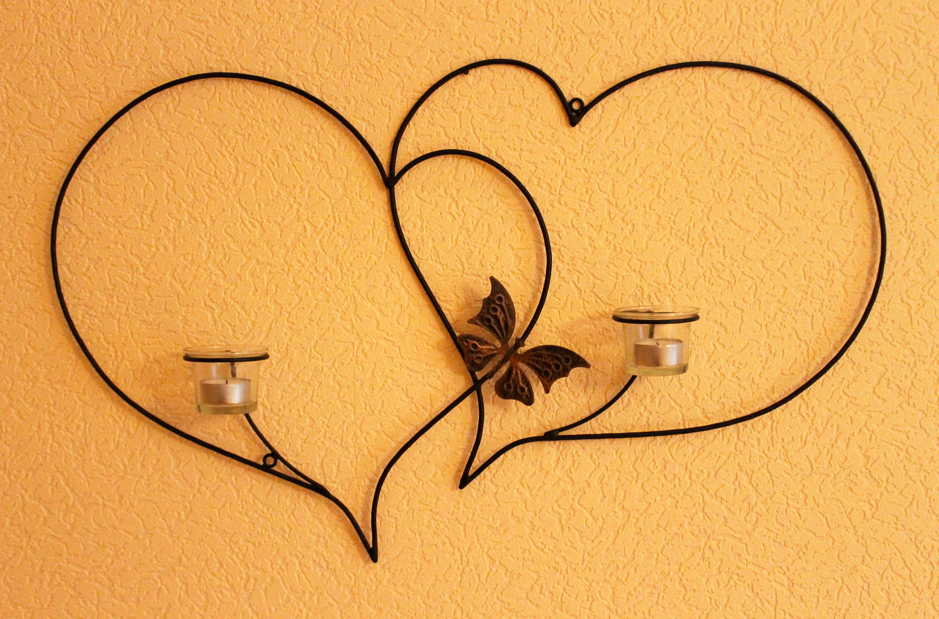 Doppelherz Wandteelichthalter Herz 65 cm Teelichthalter aus Metall Wandleuchter Kerzenhalter