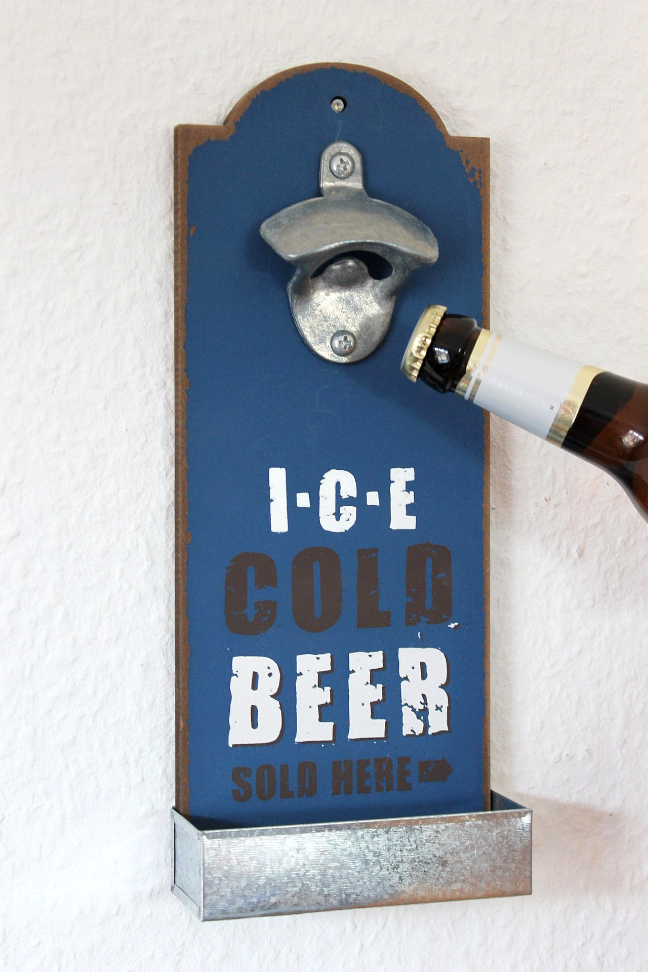 Wandflaschenöffner mit Kronkorkenbehälter 20003 Blau "Ice cold beer" Bieröffner 32cm Flaschenöffner