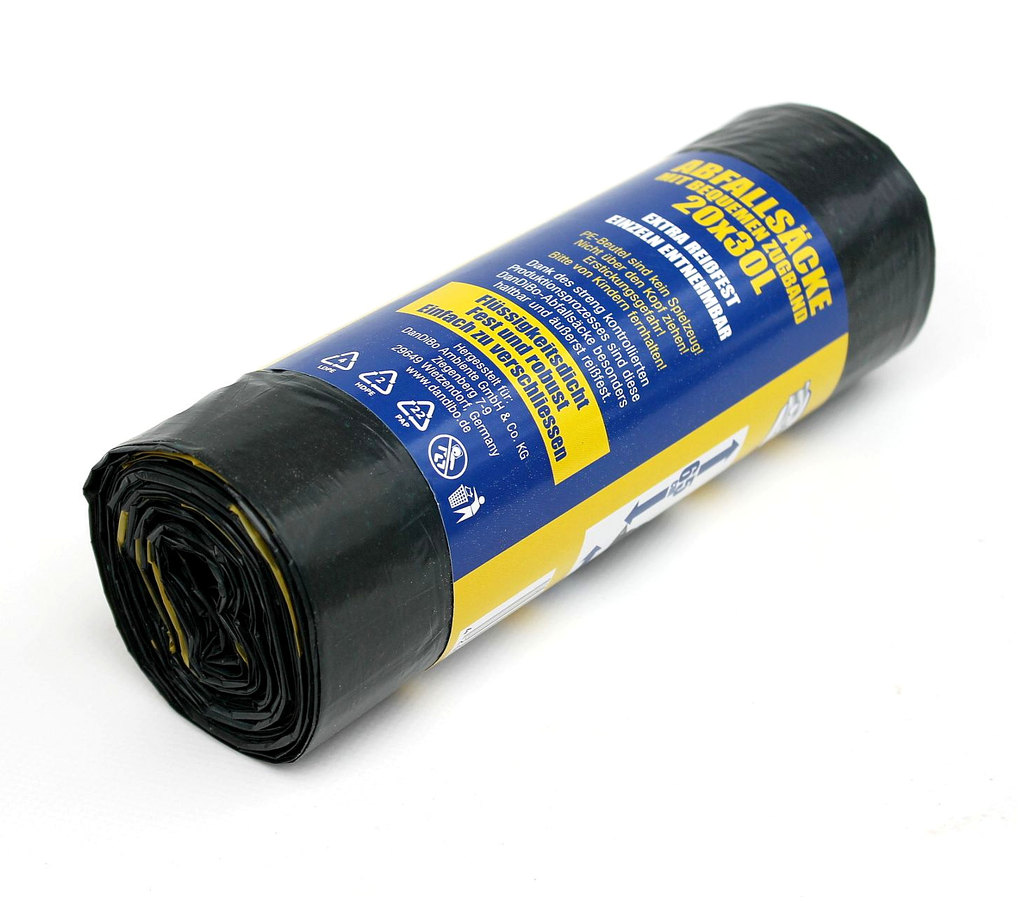 Mit den flüssigkeitsdichten DanDiBo 30L LDPE Reg. Mülltüten mit Zugband können Sie Ihren Haushaltsmüll, Ihre Gartenabfälle, Ihren alten Schrott, Sperrmüll und Ähnliches praktisch entsorgen.