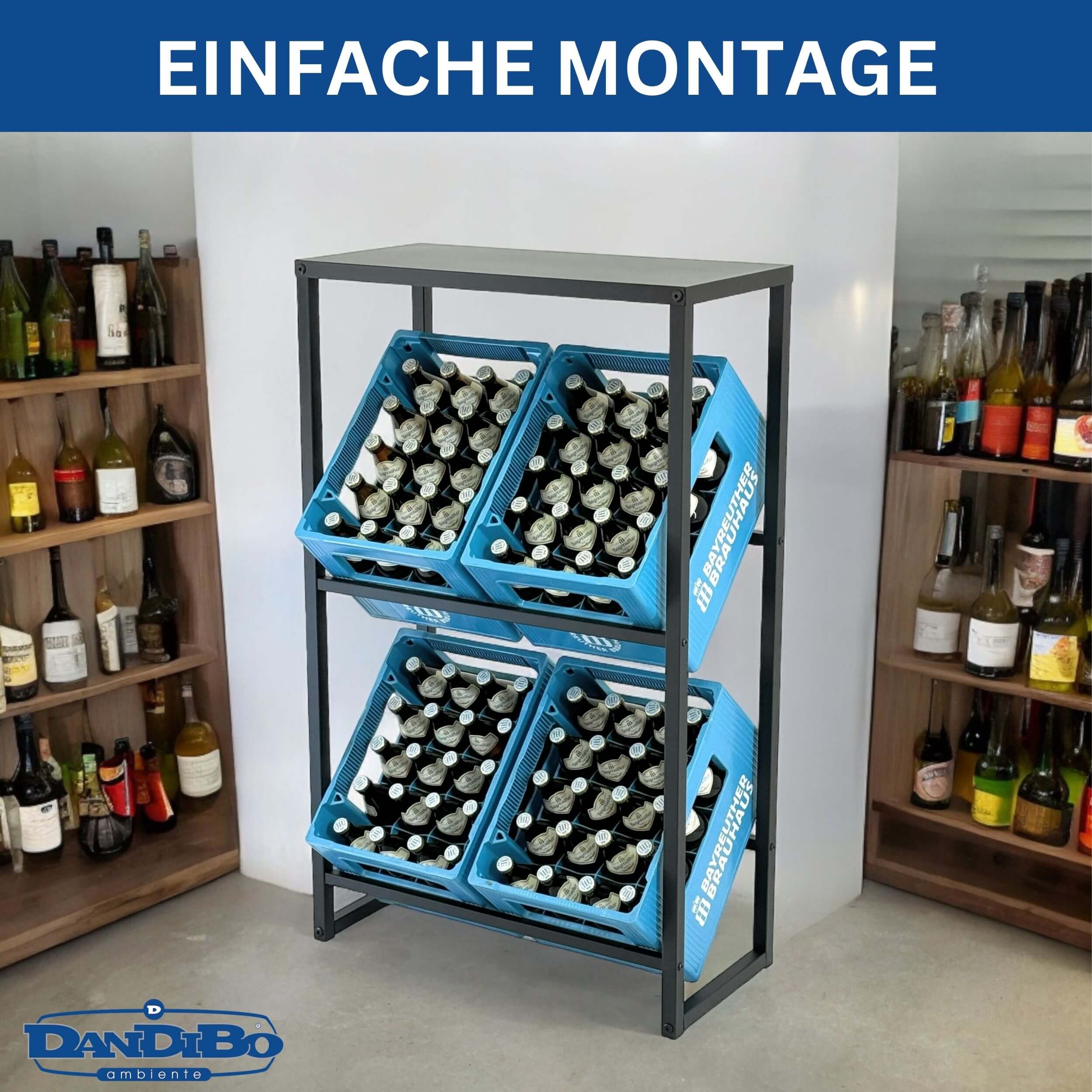 PLATZ FÜR 4 KISTEN UND GROSSZÜGIGE ABLAGEFLÄCHE - Mit ausreichend Platz für 4 Getränkekisten bietet der Getränkekistenhalter genügend Stauraum, um Ihre Getränkevorräte ordentlich zu organisieren. Darüber hinaus verfügt er über eine großzügige Ablagefläche, auf der Sie Gläser, Flaschenöffner oder Snacks griffbereit ablegen können.