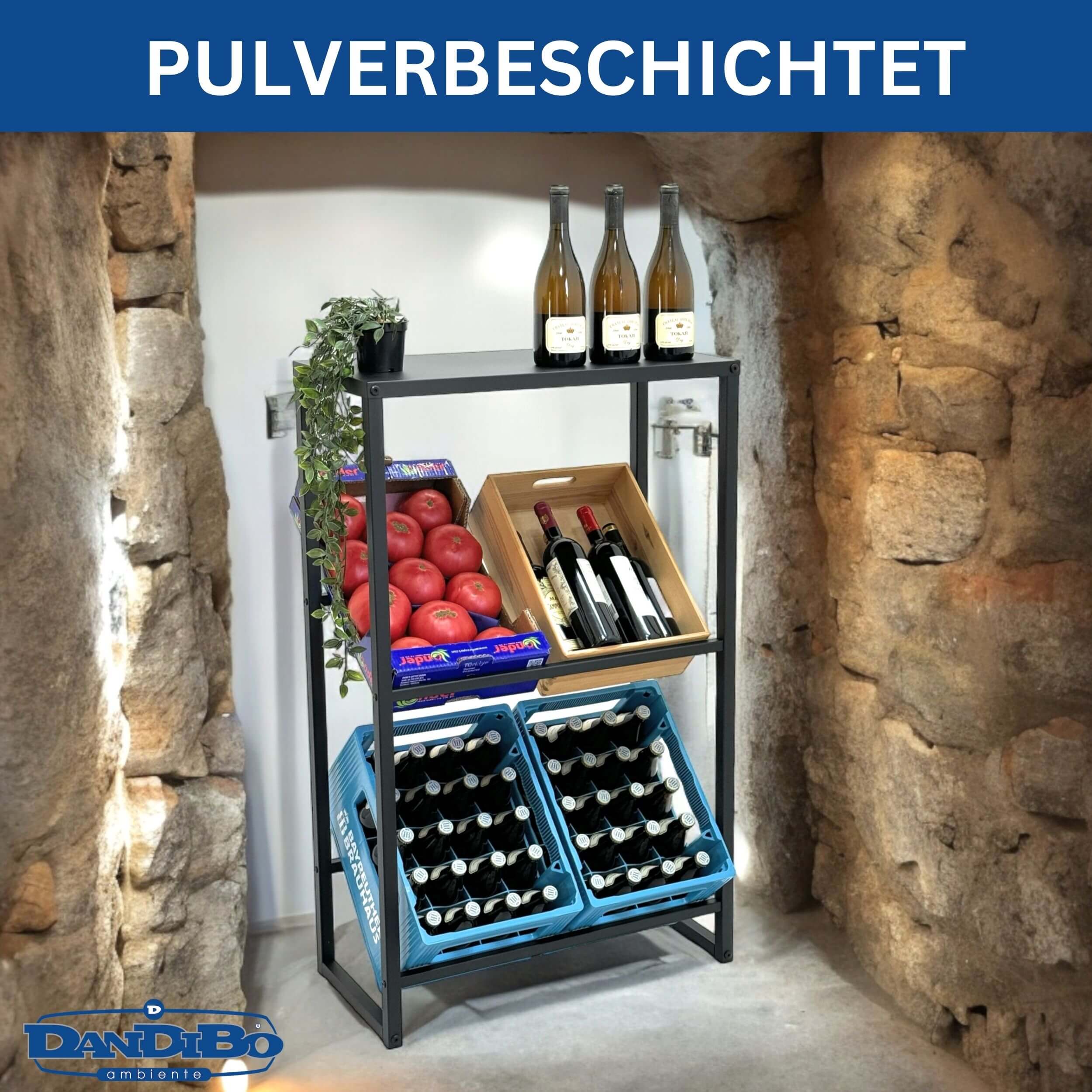 STABILE KONSTRUKTION - Das Getränkekistenregal ist aus Metall gefertigt und verfügt über eine schwarze Pulverbeschichtung, die nicht nur für eine ansprechende Optik sorgt, sondern auch eine Langlebigkeit gewährleistet. Zusätzlich bietet der Getränkekistenhalter eine praktische zusätzliche Ablagefläche, auf der Sie weitere Gegenstände abstellen können.