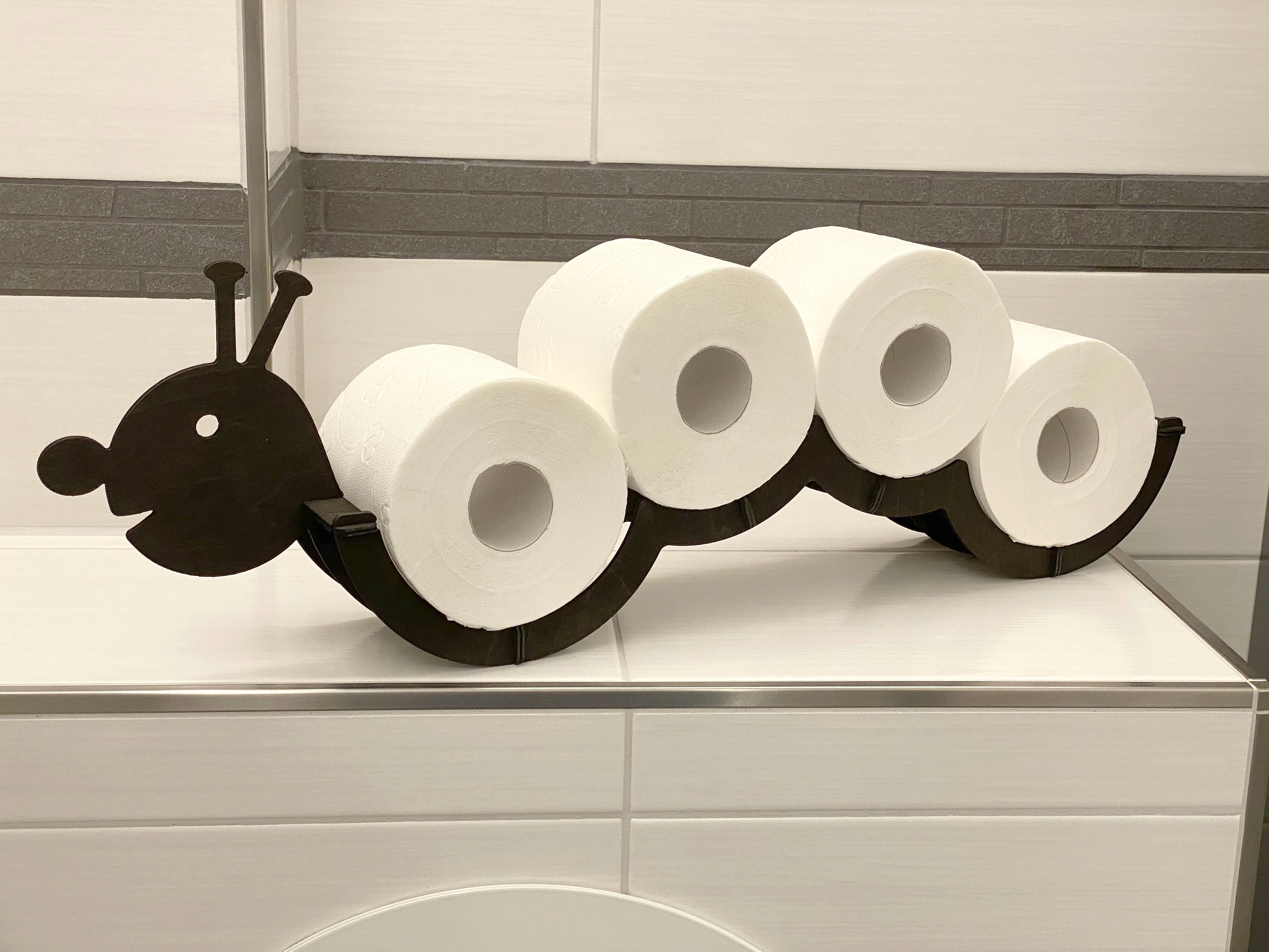 Die Raupe fügt sich stilvoll in Ihrem Bad / WC ein und bietet so Platz für die Aufbewahrung von bis zu 4 handelsüblichen Rollen.