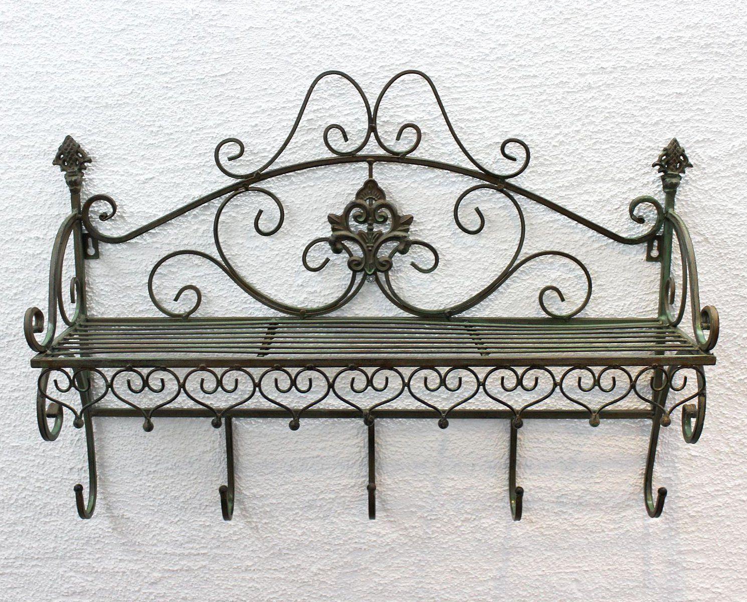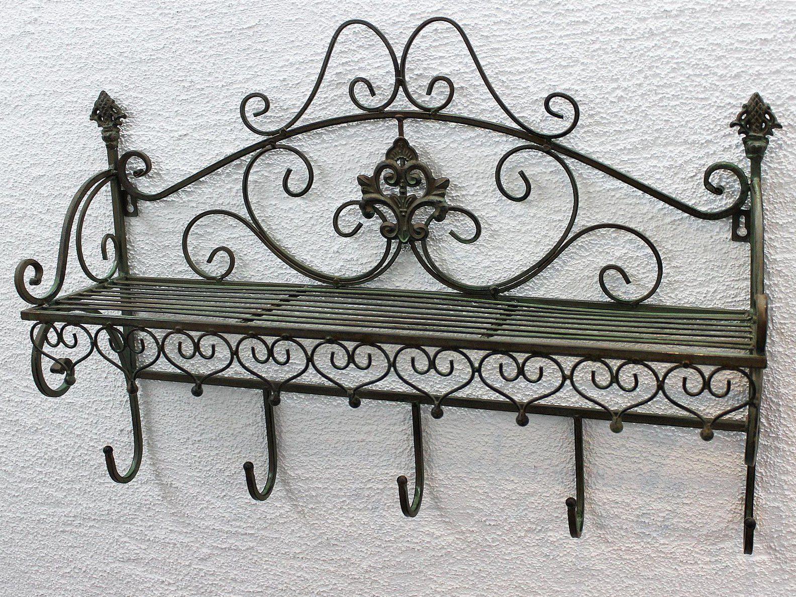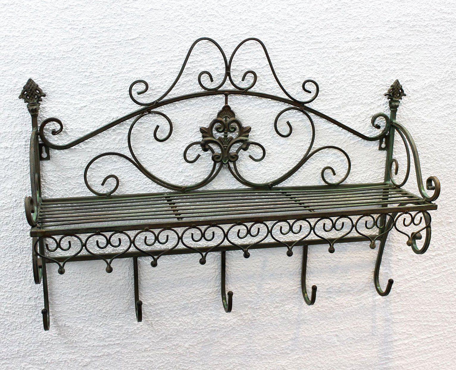 DanDiBo Wandgarderobe Metall mit Ablage 60 cm Malege Kleiderhaken 12205 Wandregal Garderobe Vintage