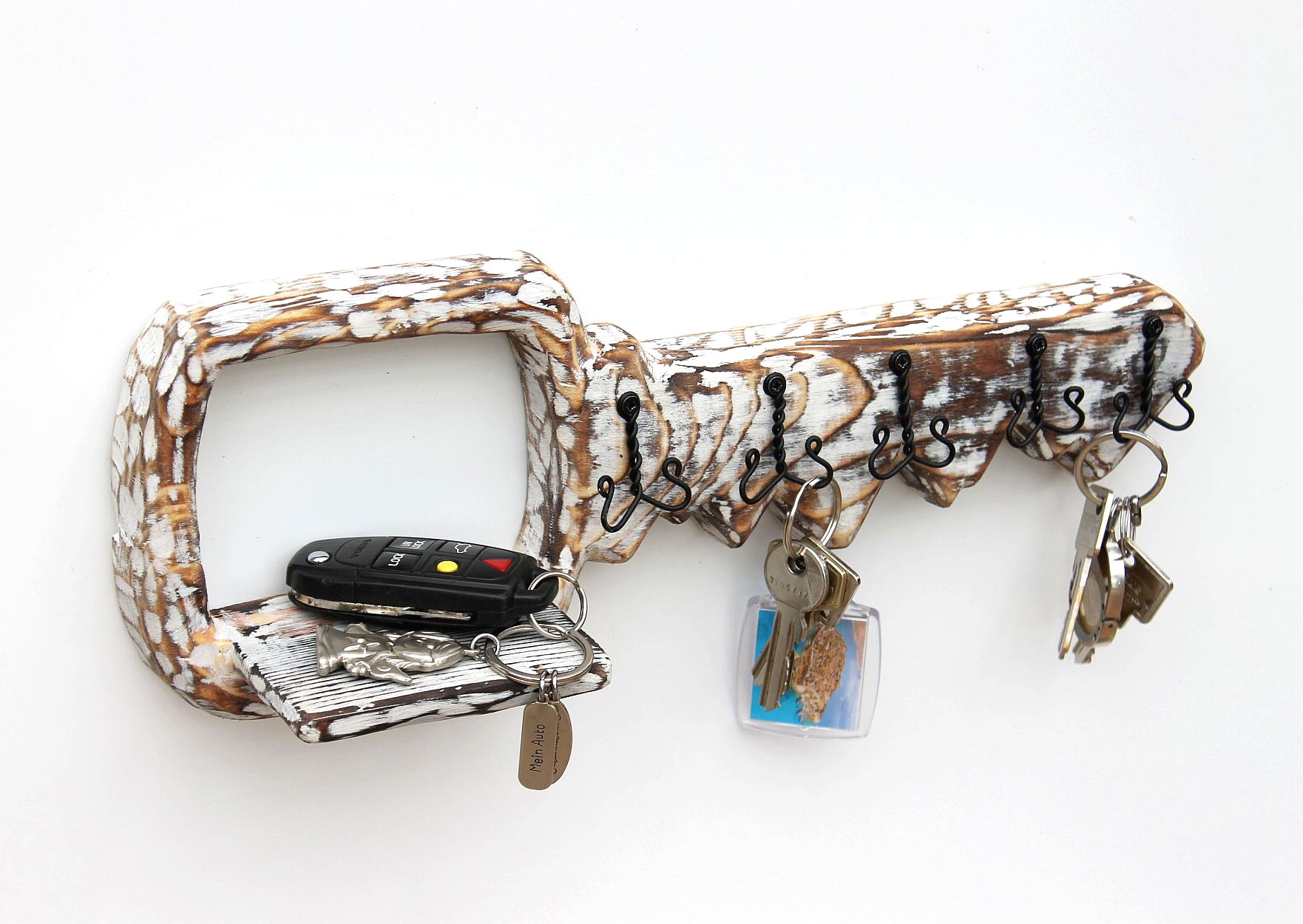 In Form eines Schlüssels und mit integrierter Ablage für Ihre Geldbörse oder Sonstiges im Vintage Stil.