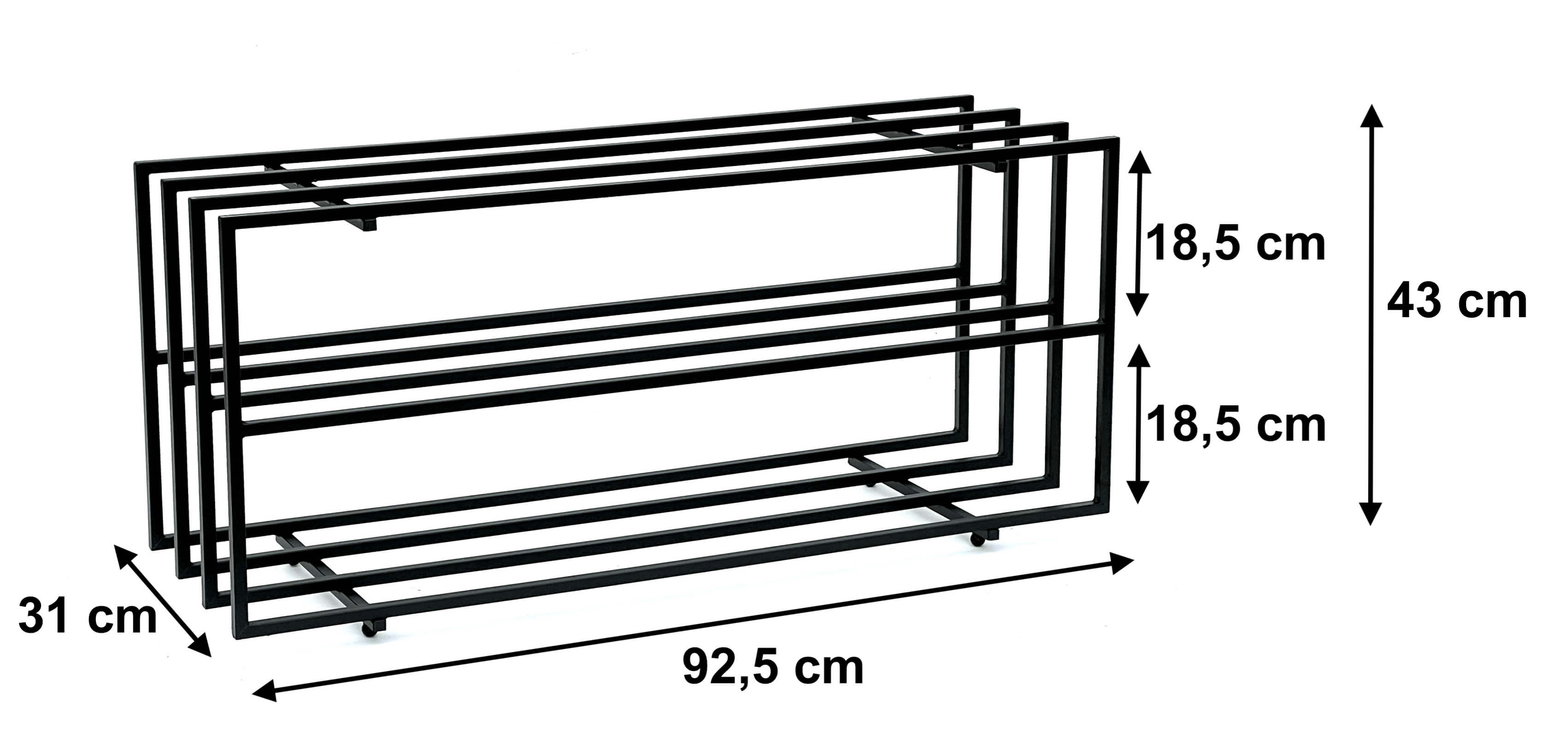 KOMPAKTE ABMESSUNGEN - Breite 92,5 cm, Tiefe 31 cm, Höhe 43 cm, Gewicht 6,3 kg. Farbe: Schwarz. Material: Metall