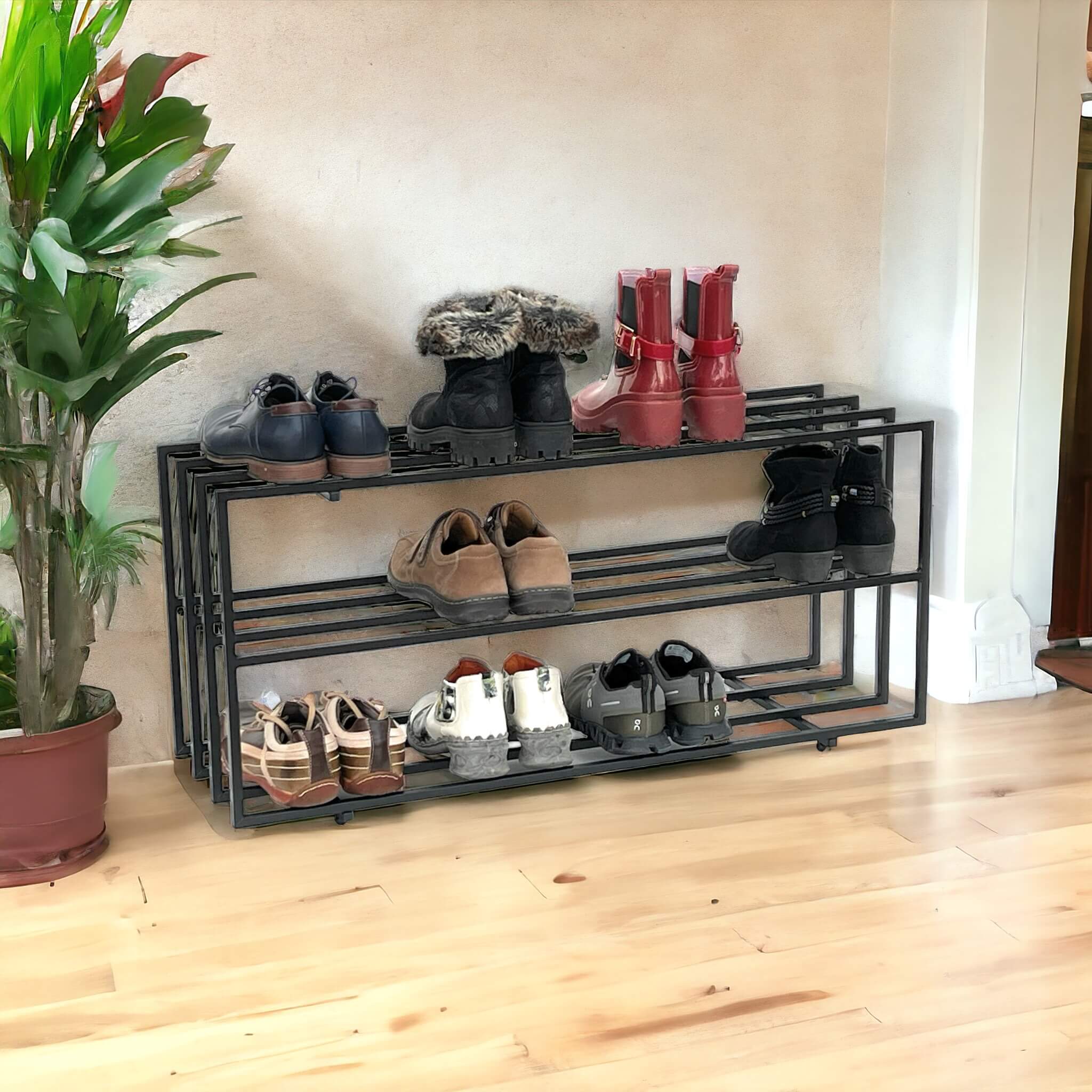 ROBUSTES DESIGN - Gefertigt aus hochwertigem Metall, zeichnet sich die Schuhbank durch ihre bemerkenswerte Robustheit und Stabilität aus. Sie bietet ausreichend Platz und die erforderliche Festigkeit, um Schuhe oder andere Gegenstände sicher aufzubewahren.