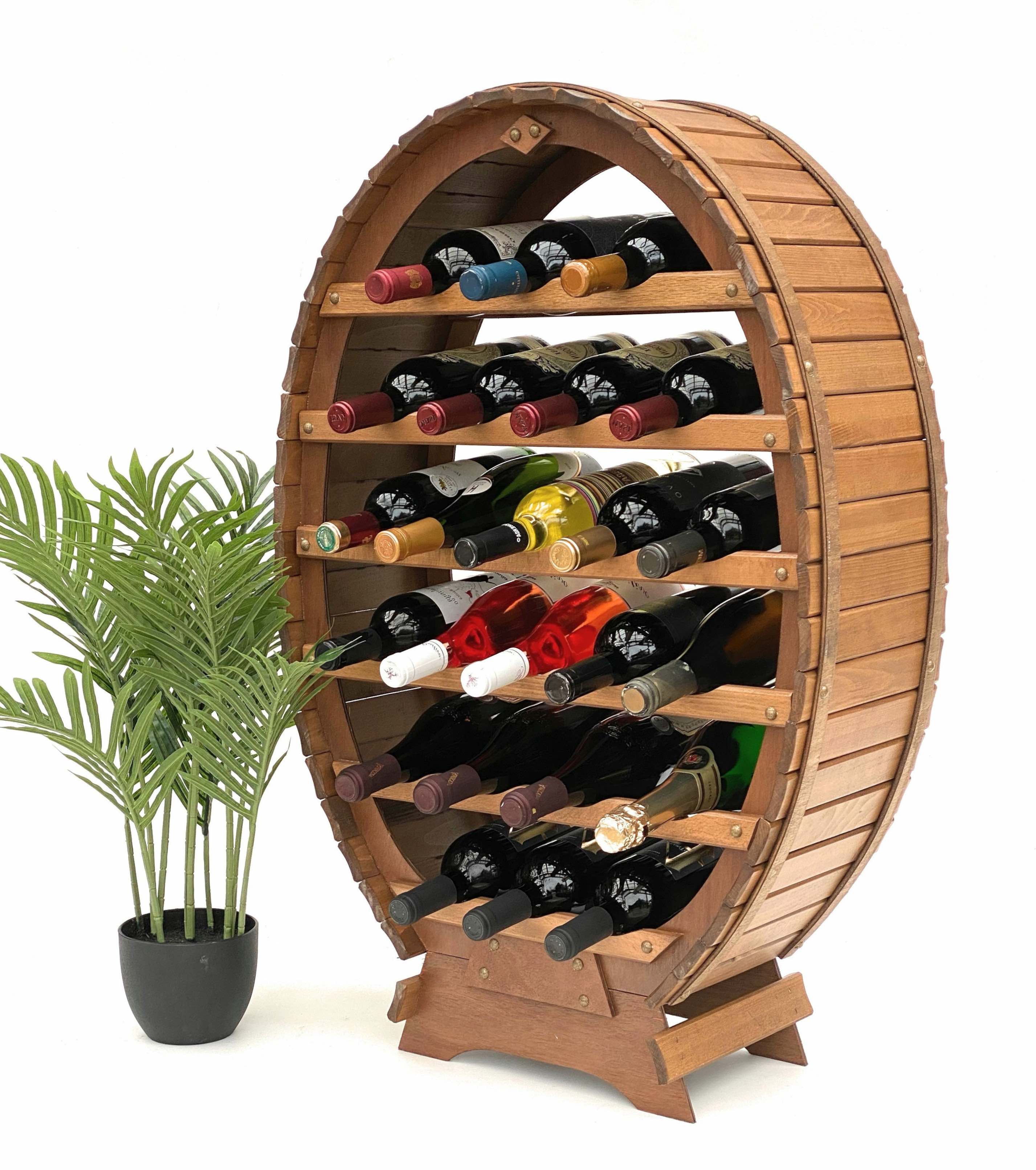 Preview: DanDiBo Weinregal Holz Stehend Weinfass 24 Flaschen Braun Flaschenregal Flaschenhalter Fass