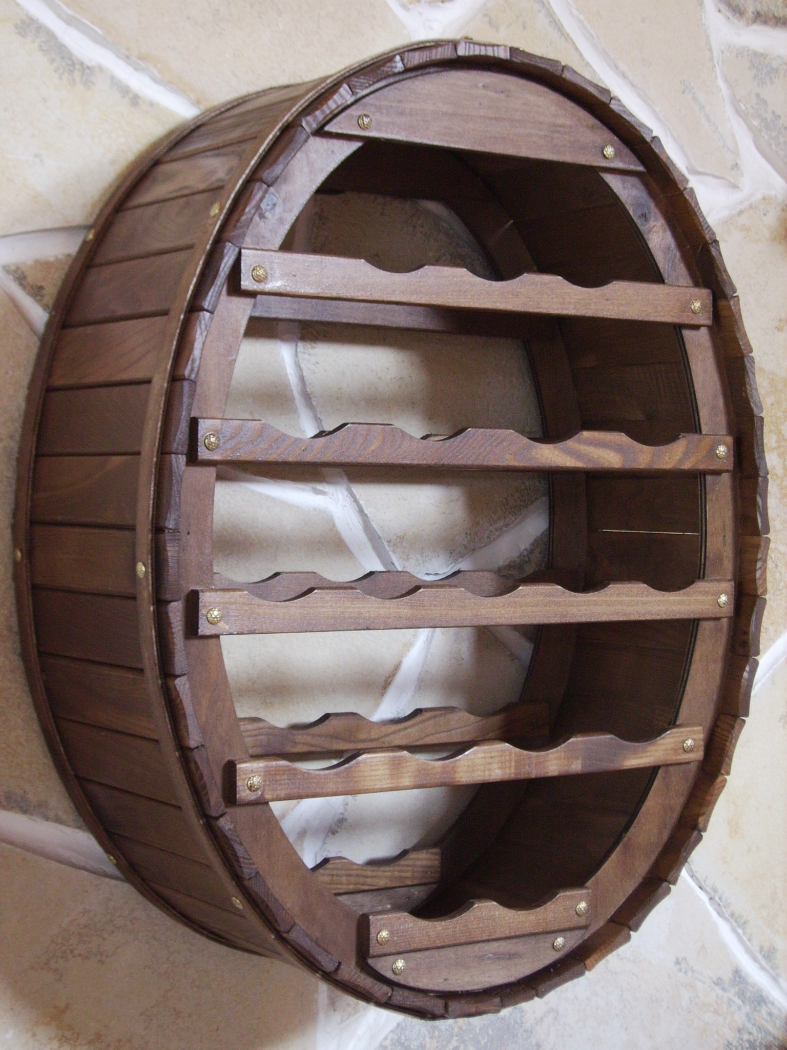 Weinregal zum aufhängen für 18 Flaschen Braun gebeizt im Fassform