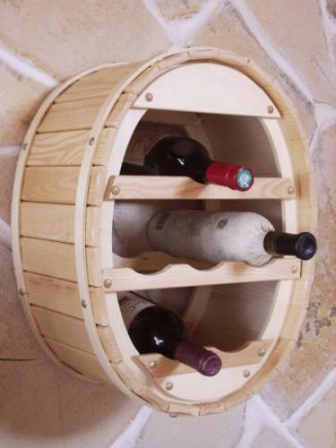 Hochwertiges Design Weinregal aus Holz gefertigt in der Form von einem Weinfass. Das Regal bietet Platz für bis zu 6 Flaschen, sowohl für 0,75 Liter als auch für 1,0 Liter Flaschen geeignet.
