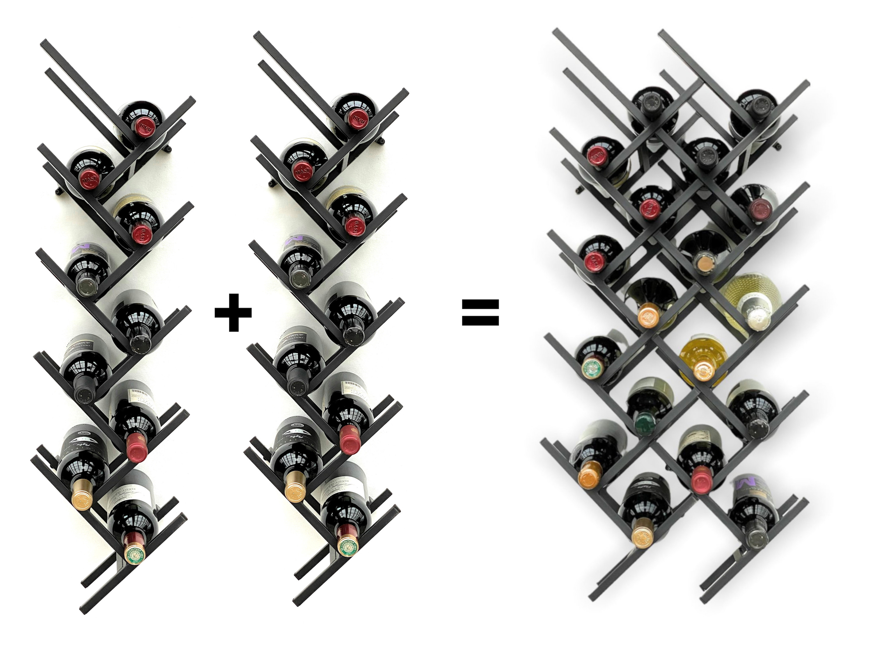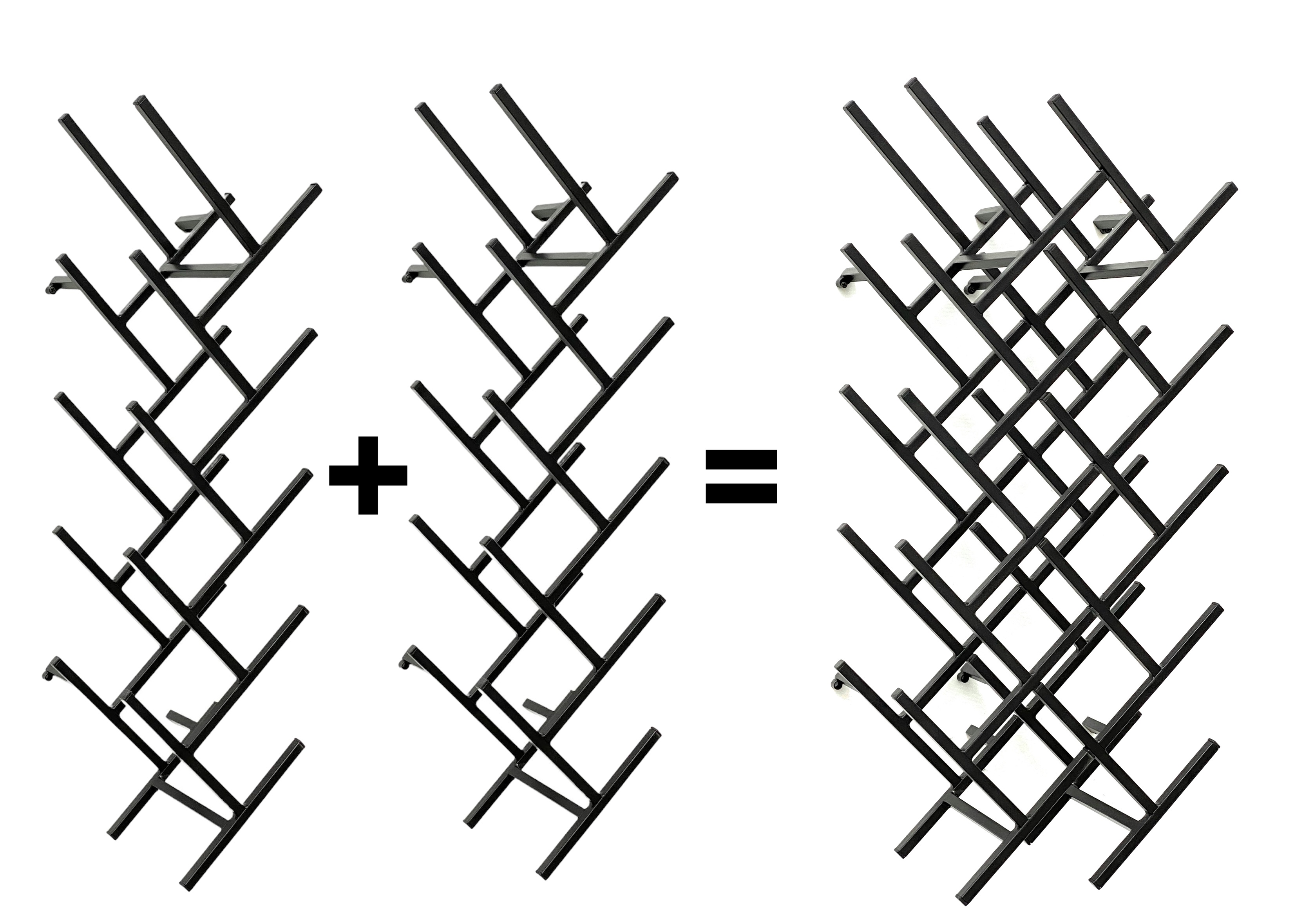 Das Weinflaschenregal kann vertikal (oben / unten), sowie horizontal (links / rechts) beliebig oft erweitert werden.