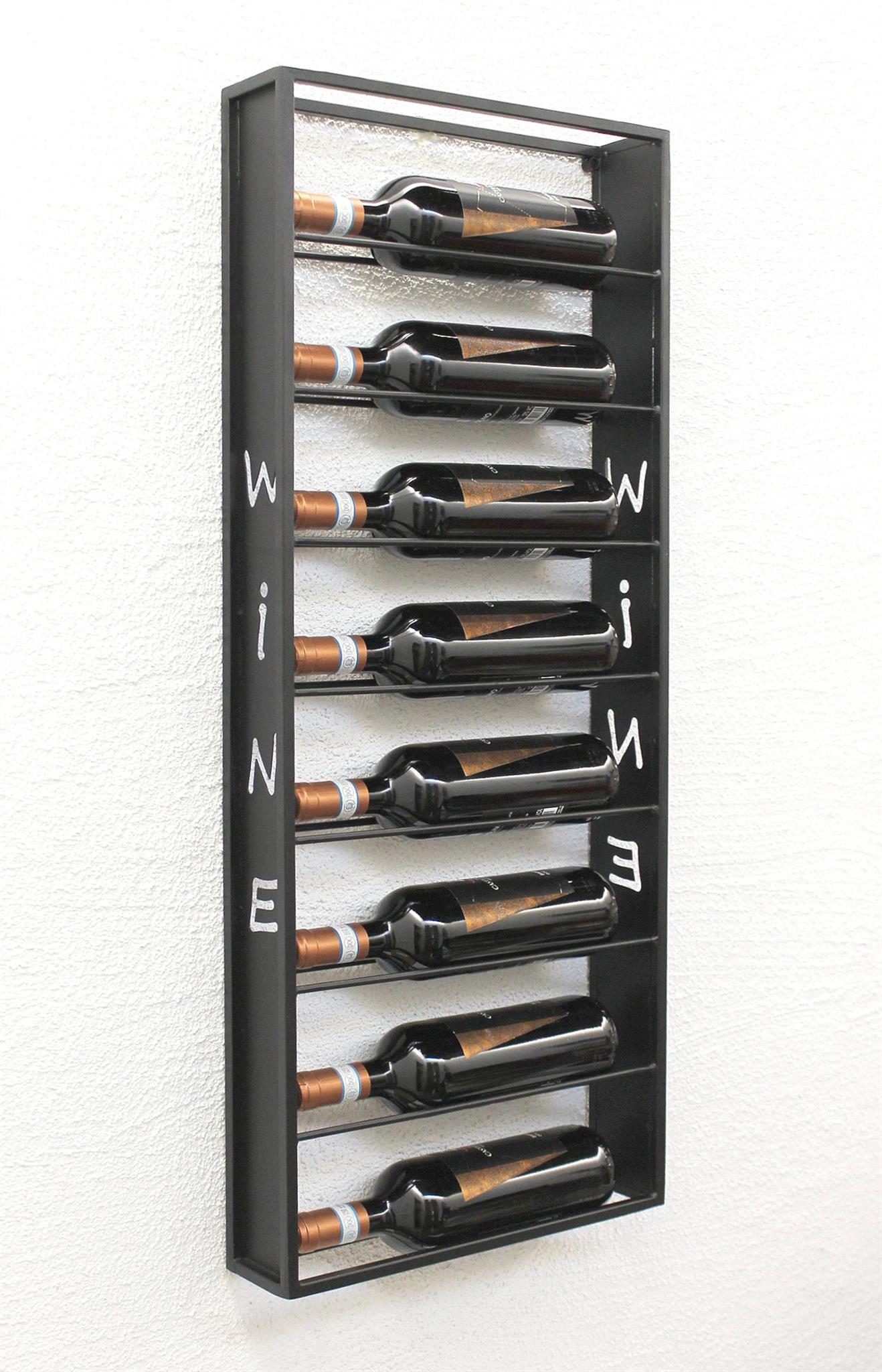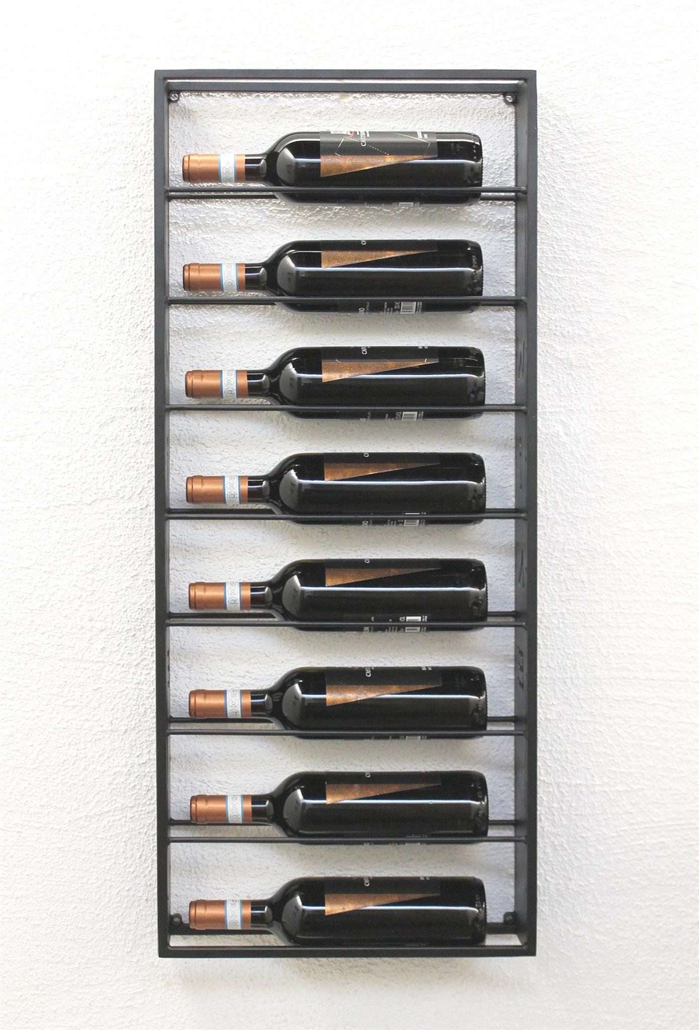 Maße: Höhe 88 cm, Breite 37 cm, Tiefe 8 cm. Der Innenabstand der Flaschenablagen beträgt 6,0 cm. Gewicht: 3,5 kg