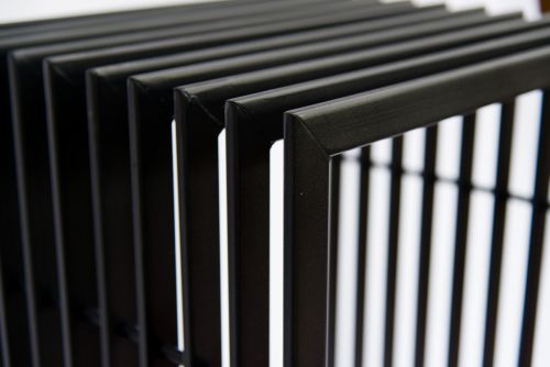 Pulverbeschichtet. Farbe Schwarz. Sehr stabil.