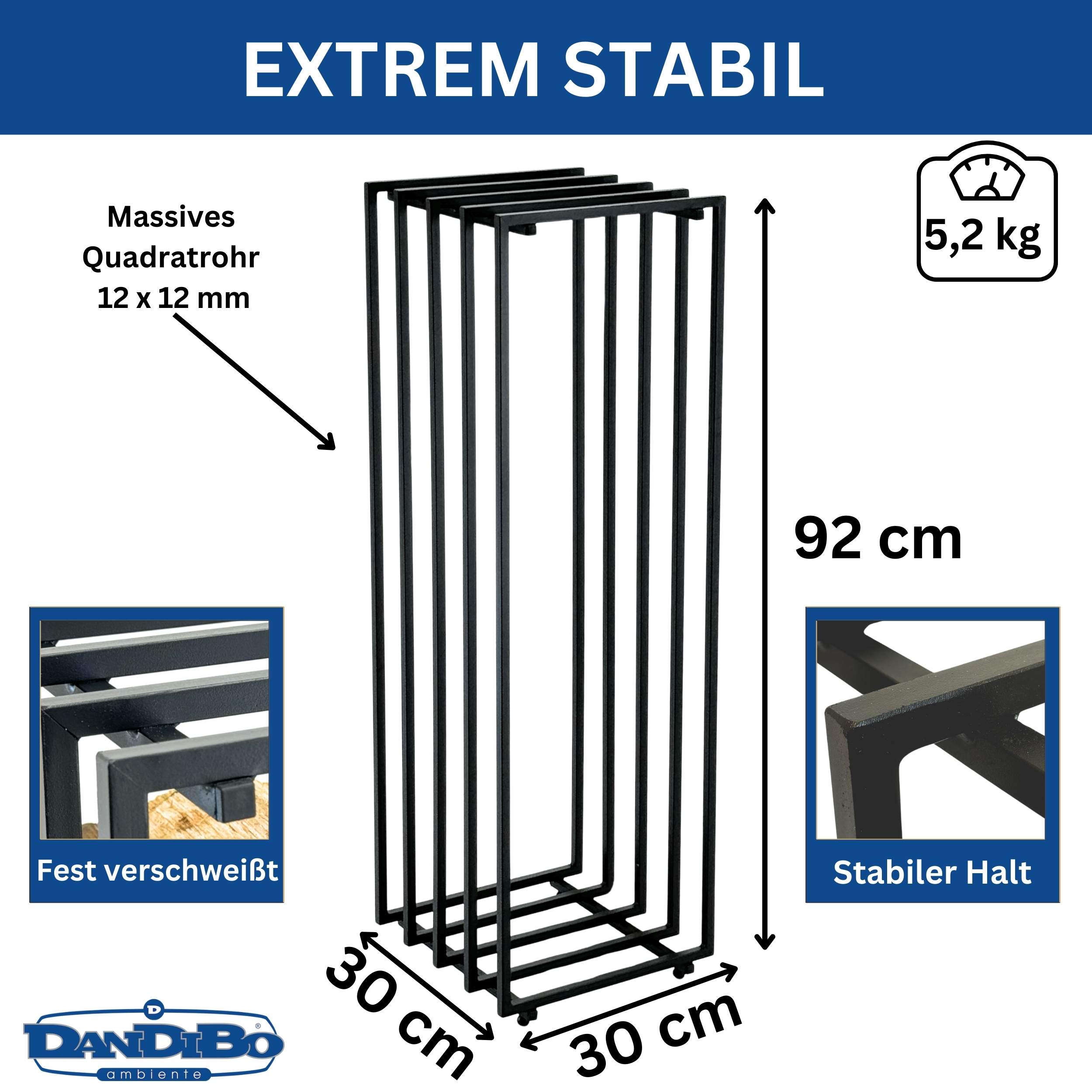 EXTREM STABIL: Das schwarze Kaminholzregal aus Metall bietet außergewöhnliche Stabilität und Langlebigkeit. Die robuste Pulverbeschichtung schützt vor Abnutzung und verleiht dem Regal ein ansprechendes Erscheinungsbild.