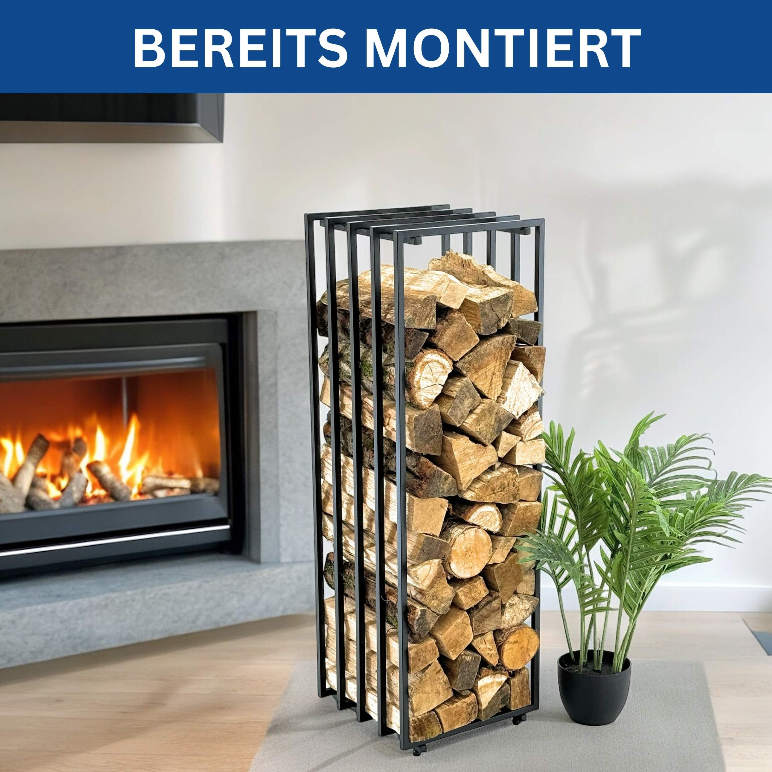 PLATZSPARENDES DESIGN: Mit kompakten Maßen von 30 x 30 x 92 cm passt das Regal perfekt in jeden Innenraum und bietet dennoch ausreichend Platz für Brennholz. Dieses geschlossene Design ermöglicht eine effiziente Lagerung von Kaminholz und Holzbriketts.