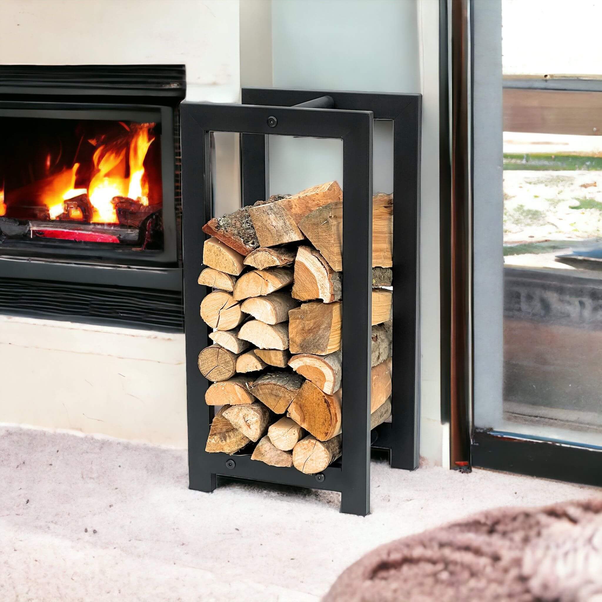 PLATZSPARENDES DESIGN - Dieses Regal ermöglicht eine platzsparende Aufbewahrung von Kaminholz und Holzbriketts, ohne viel Bodenfläche einzunehmen. Es eignet sich besonders gut für kleine Räume und gewährleistet eine effiziente Lagerung von Brennholz.