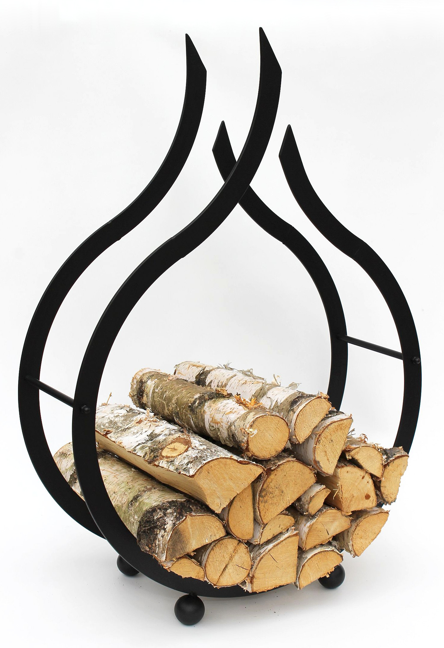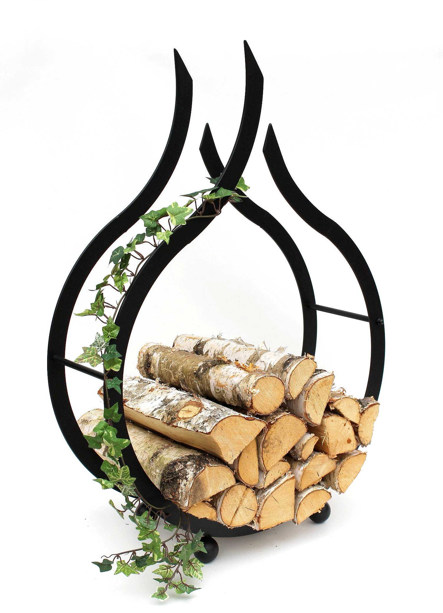 Kaminholzregal Flamme aus Eisen - wunderschöne Zimmerdekoration. Verschaffen Sie Ihrem Kaminbereich ein wärmedes Ambiente. Pulverbeschichtet. Farbe - Schwarz. Maße: Höhe 78 cm, Breite 54 cm, Tiefe 19 cm