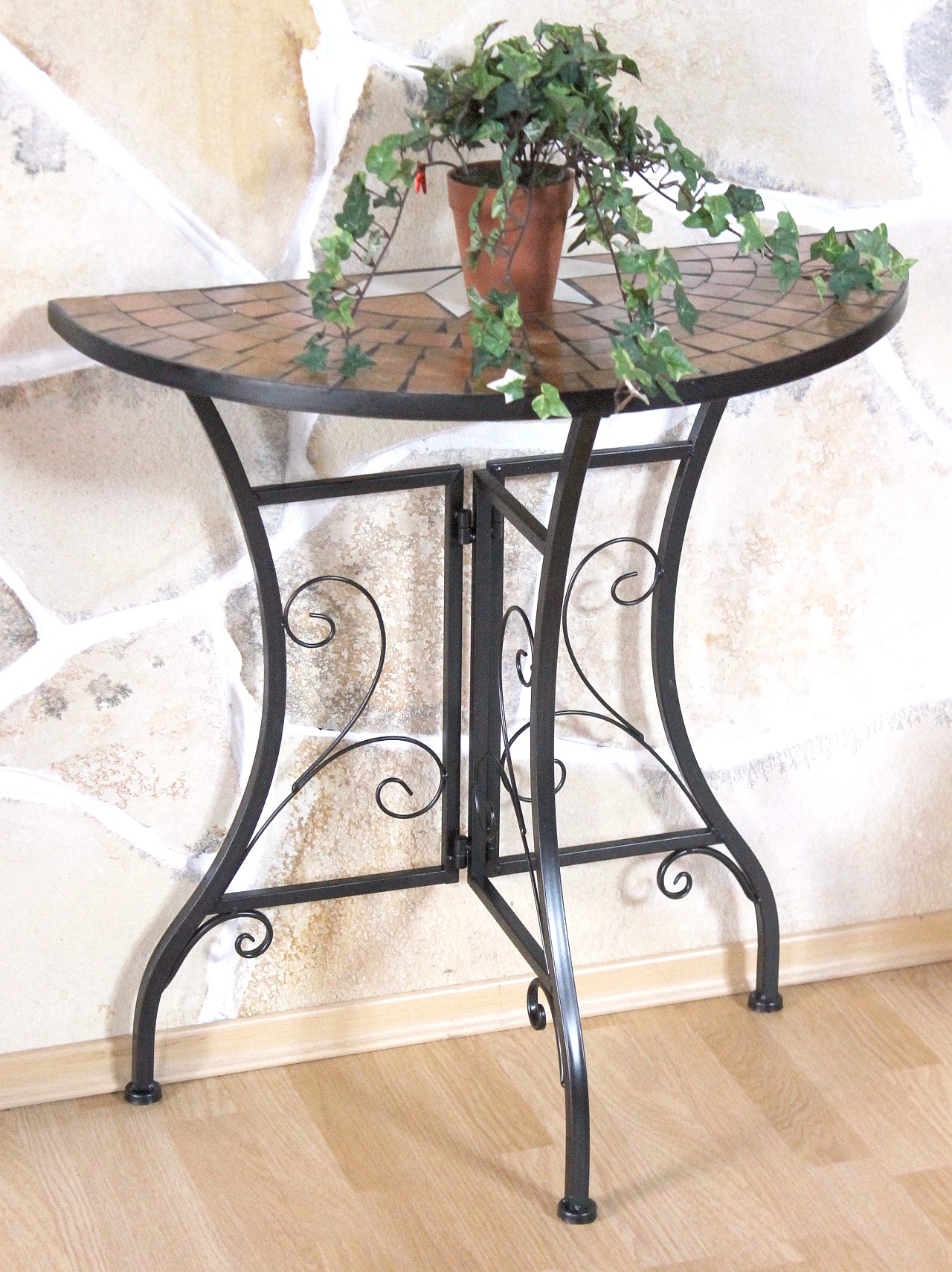 Der wunderschöne Konsolentisch Merano im Landhausstil mit Mosaiksteinen ergänzt prachtvoll Ihr Wohnzimmer, Flur, Balkon, Garten oder Ihre Terrasse.