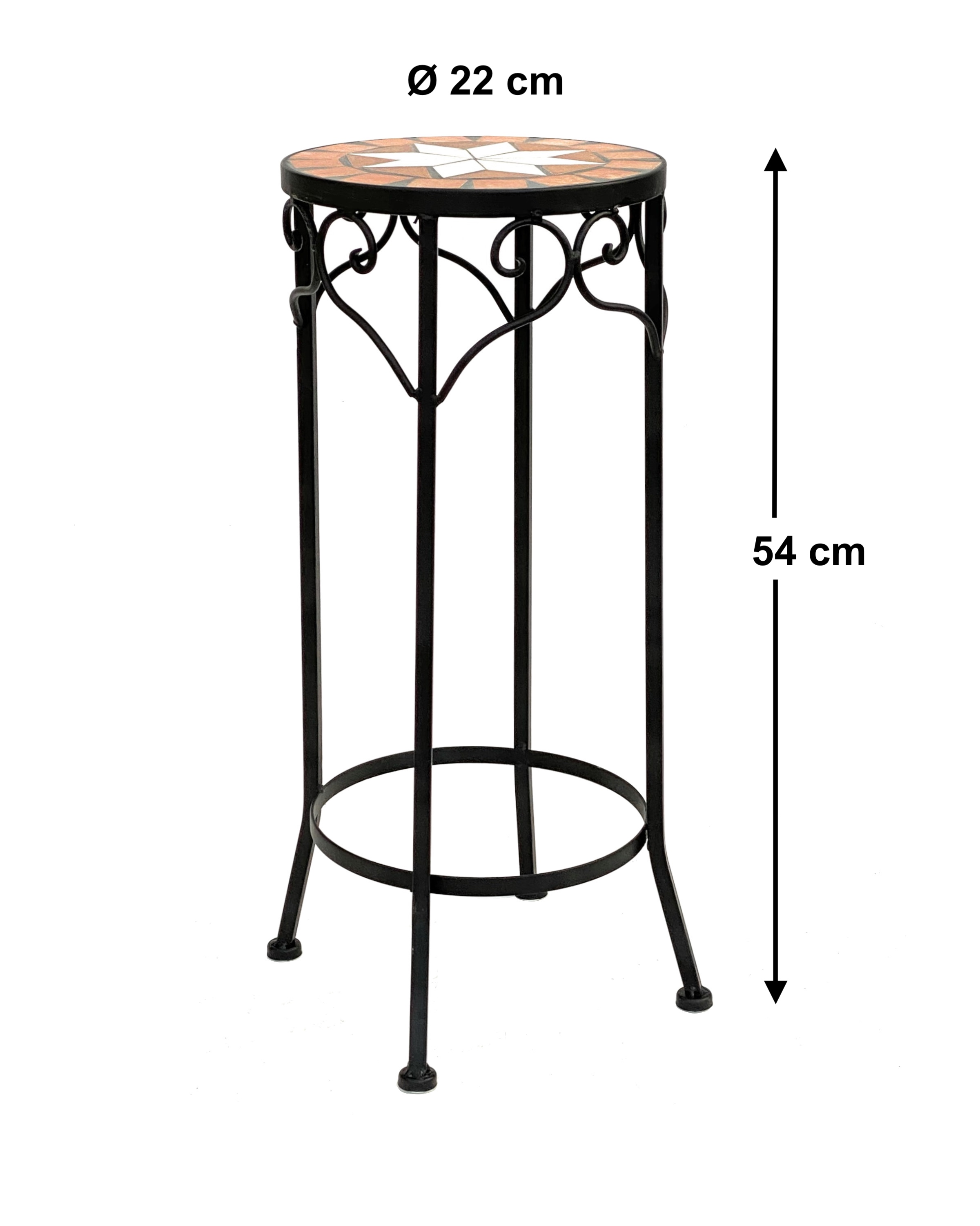 Sturdy and decorative flower stool with a stone mosaic shelf for your plants, flower pots or vases.