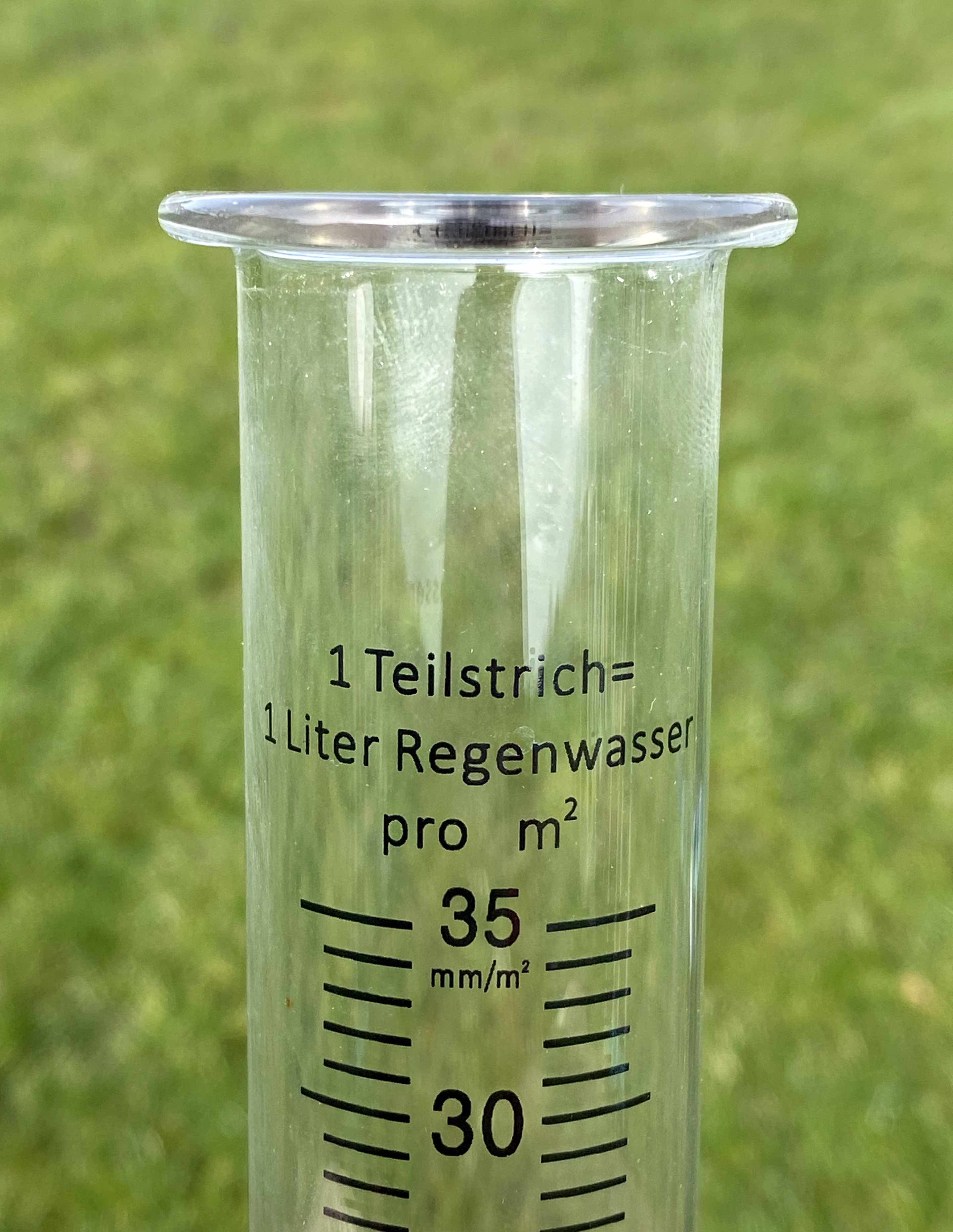 1 graduation mark on the rain gauge glass corresponds to 1 litre of rainwater per square metre.