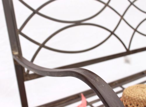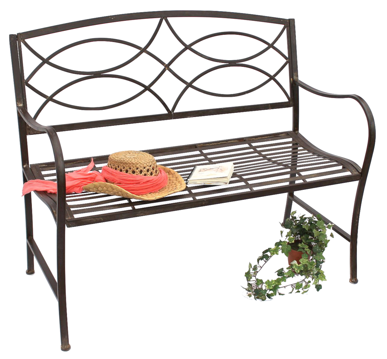 Bench made of carefully crafted metal, making it ideal for use in the garden. Perfect for escaping the stresses of everyday life for a few moments. You can also elegantly and beautifully display your flowers or other decorative items on the sturdy bench. With its powder-coated brown colour, the bench blends in perfectly with any garden. Dimensions: Height approx. 89 cm, width approx. 109 cm, depth approx. 52 cm. Seat dimensions: width approx. 105 cm, depth approx. 45 cm. Seat height approx. 44 cm. Weight: 9 kg.