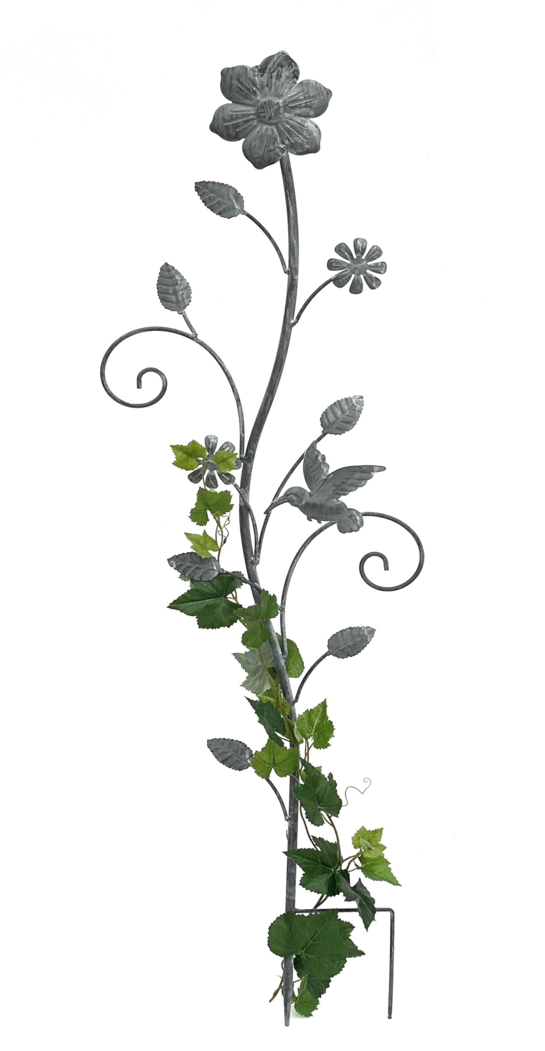 Climbing aid with flower and bird as decoration for your flower bed. Beautiful garden decoration.
