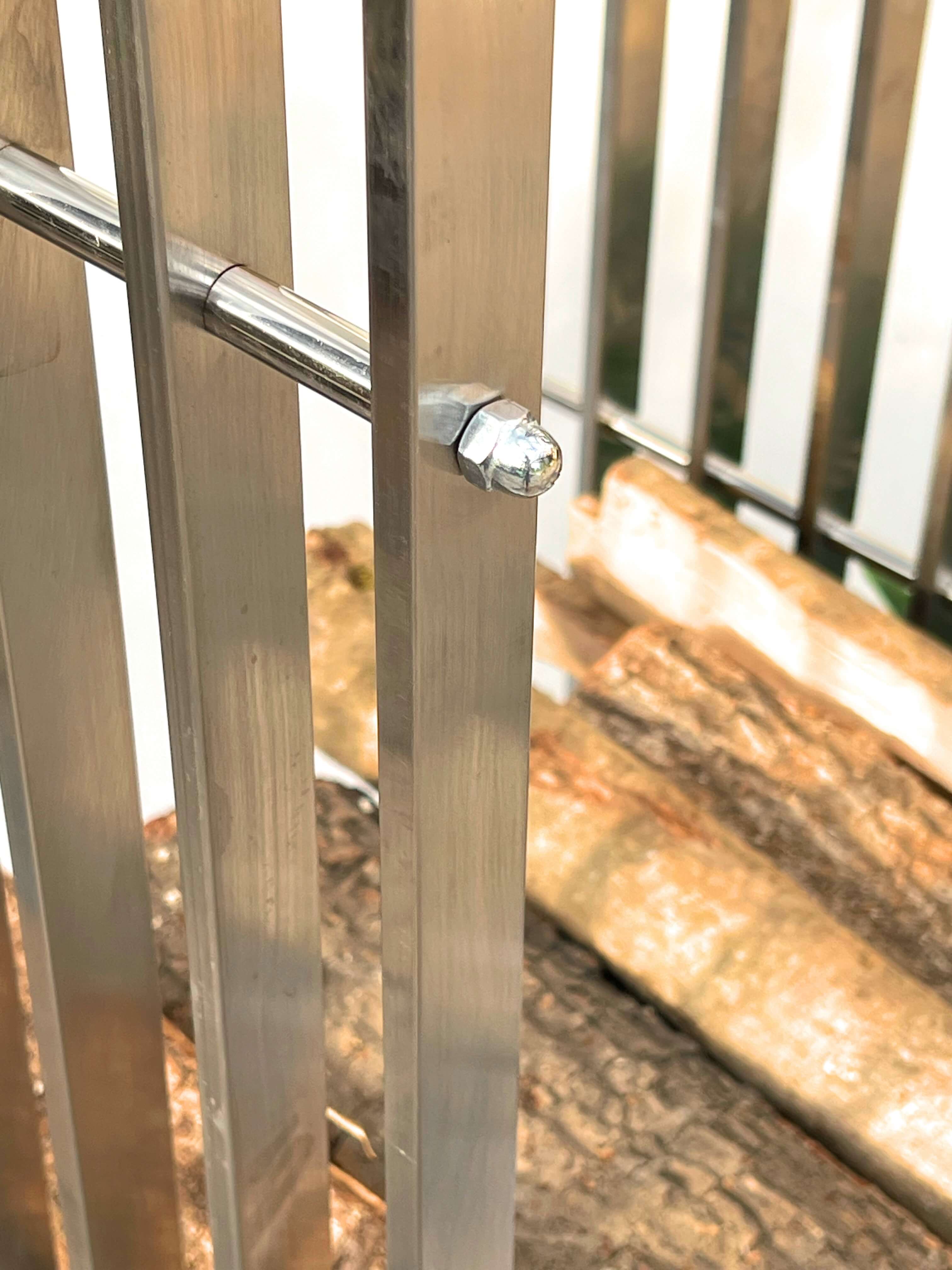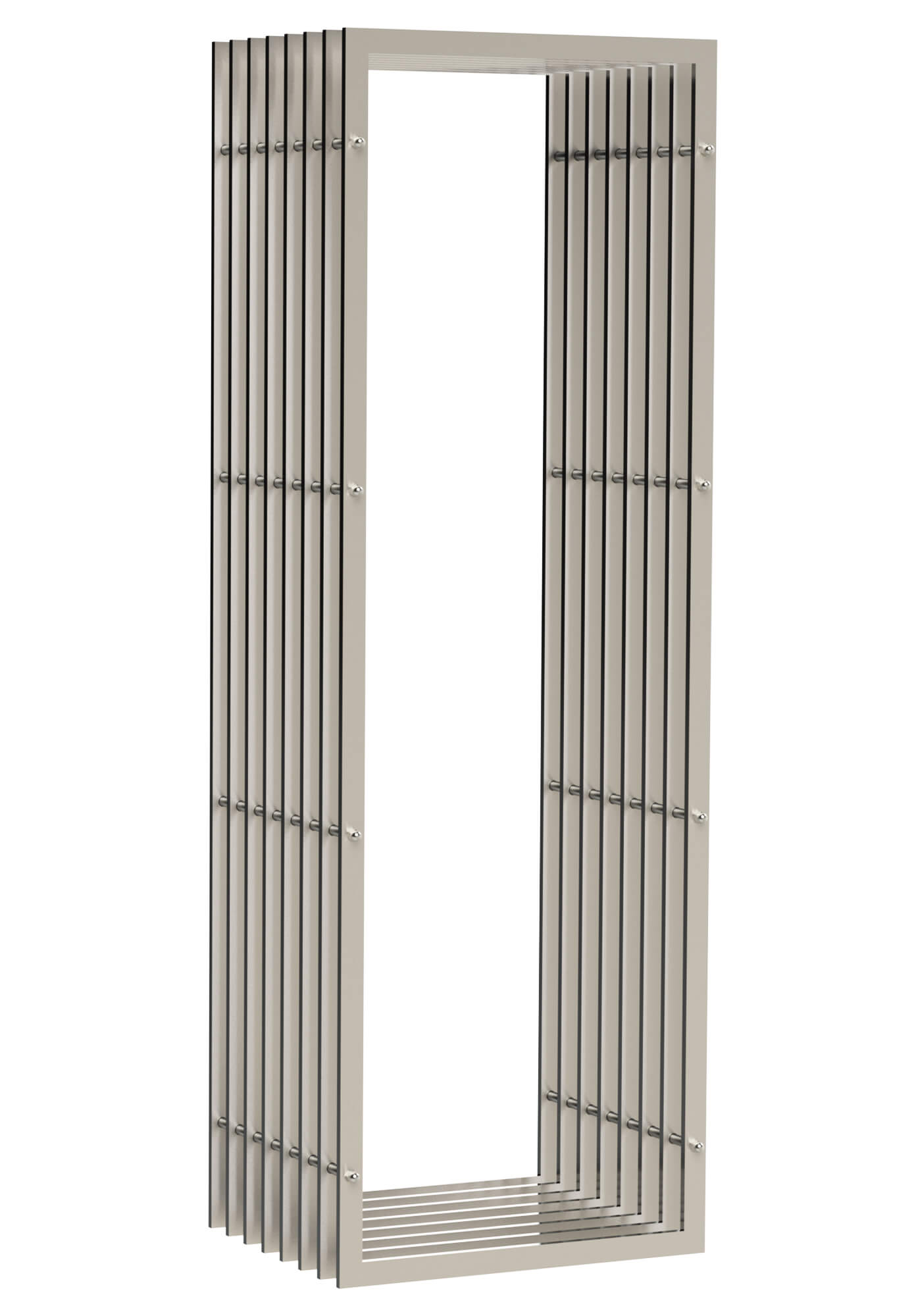 The weatherproof firewood rack consists of 8 slats/frames that are connected to each other with 8 rods.