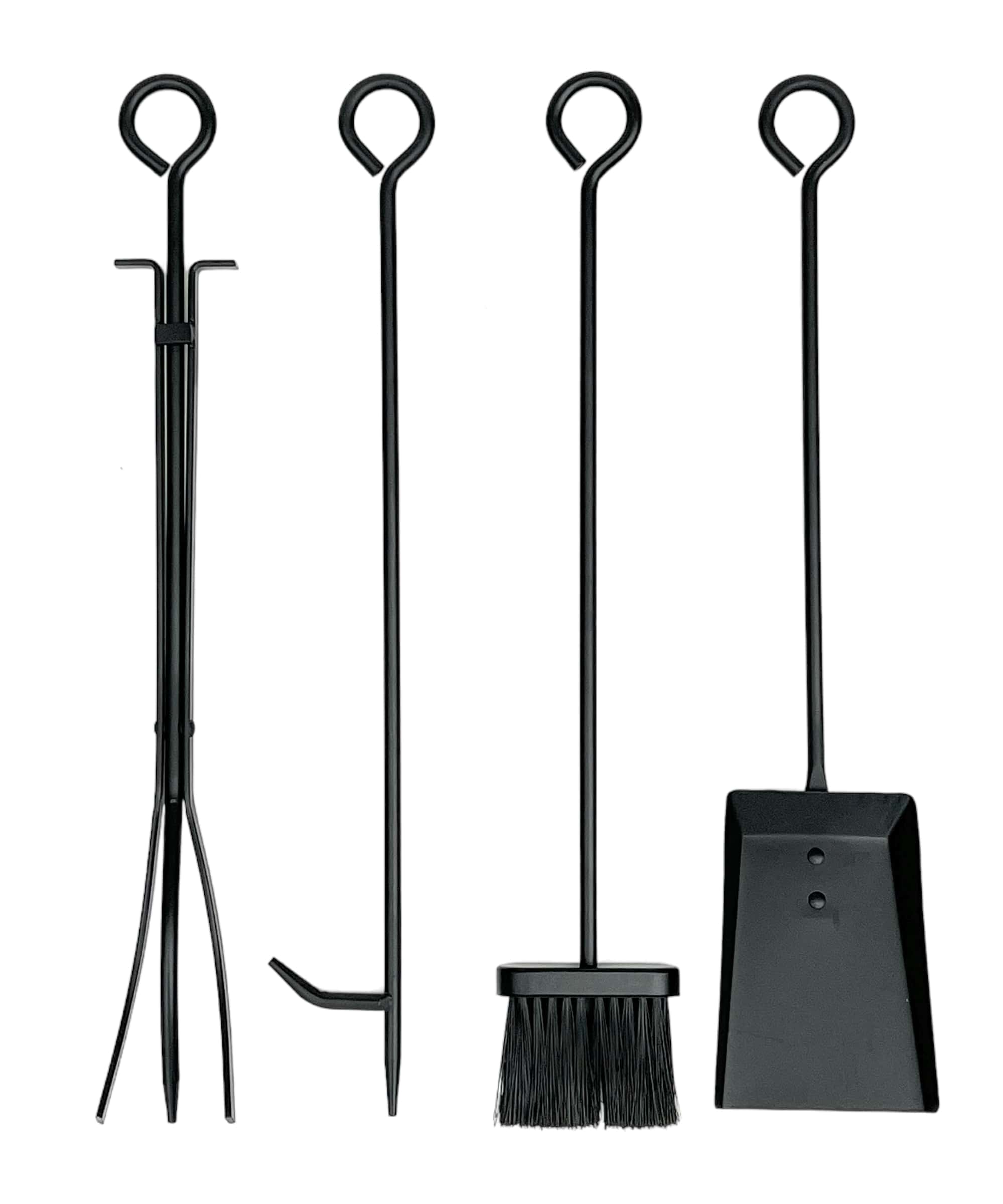FIREPLACE SET - The 4-piece fireplace set consists of an ash broom, fireplace shovel, poker and tongs and is an indispensable addition to any fireplace.