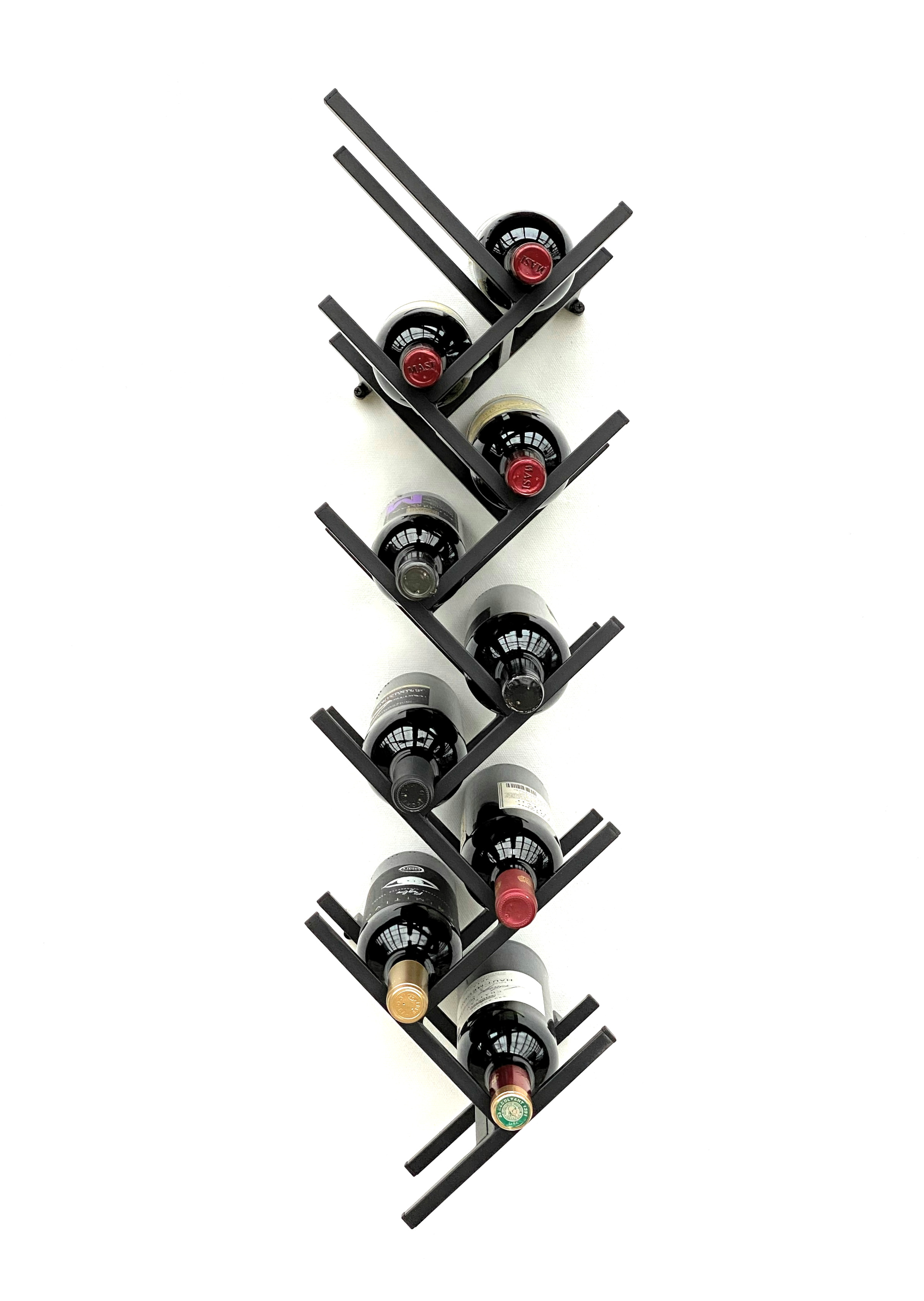 The bottle rack is supplied with fixing material, which is concealed behind the wine bottles.