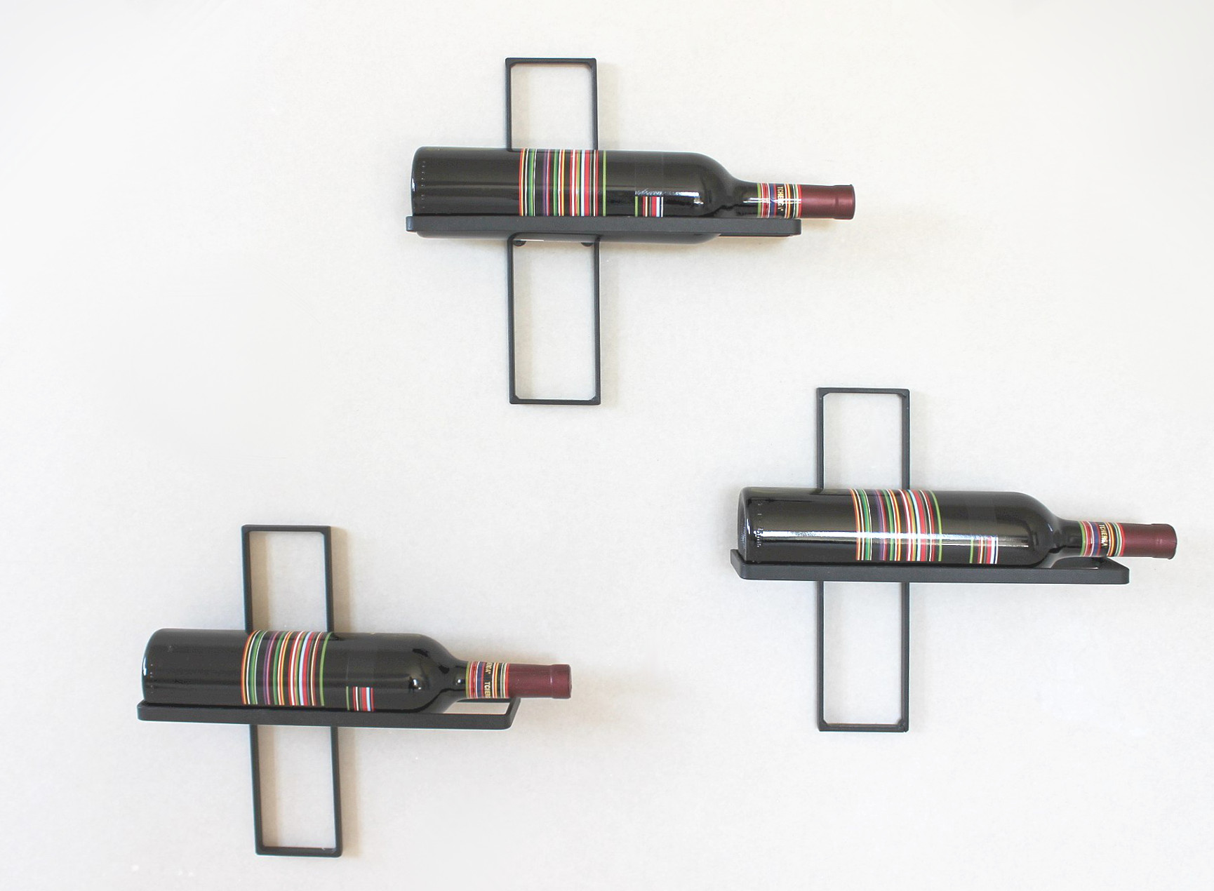 Wine rack "D3" - beautiful room decoration. Forged from metal. Powder-coated. Colour black. Dimensions: Height 28 cm, width 28 cm, depth 8.5 cm.