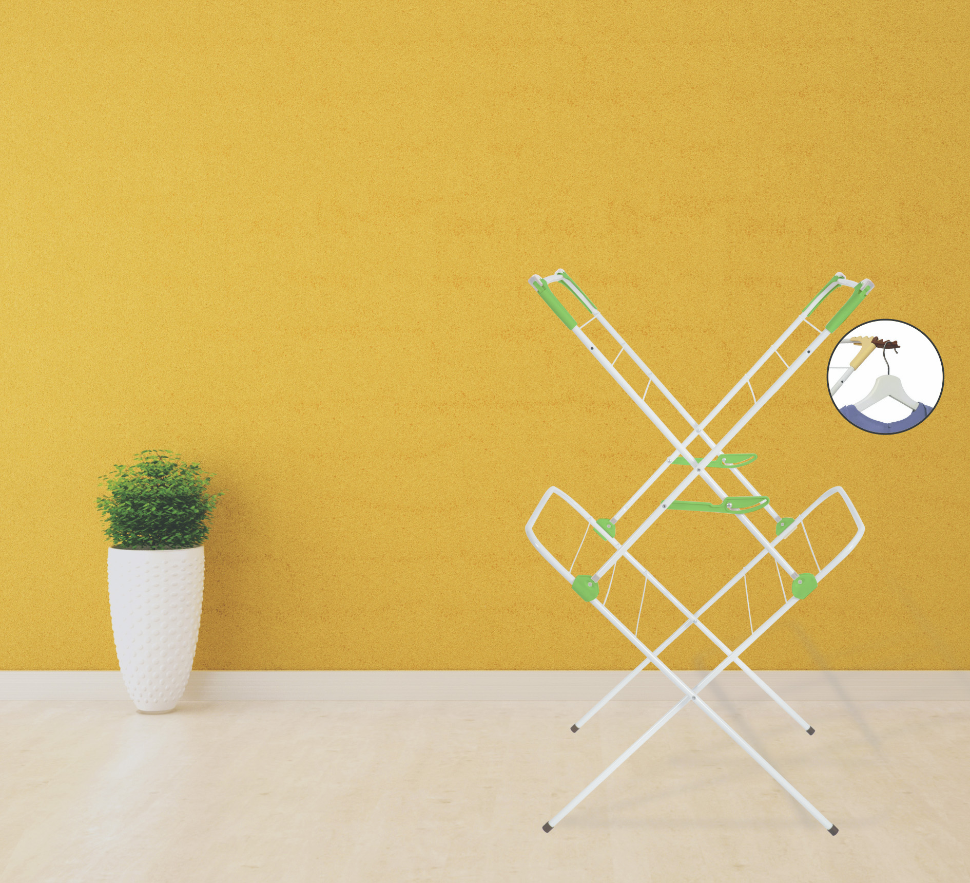 Laundry can be dried on 2 shelves, which saves space as the rack is vertical instead of horizontal.