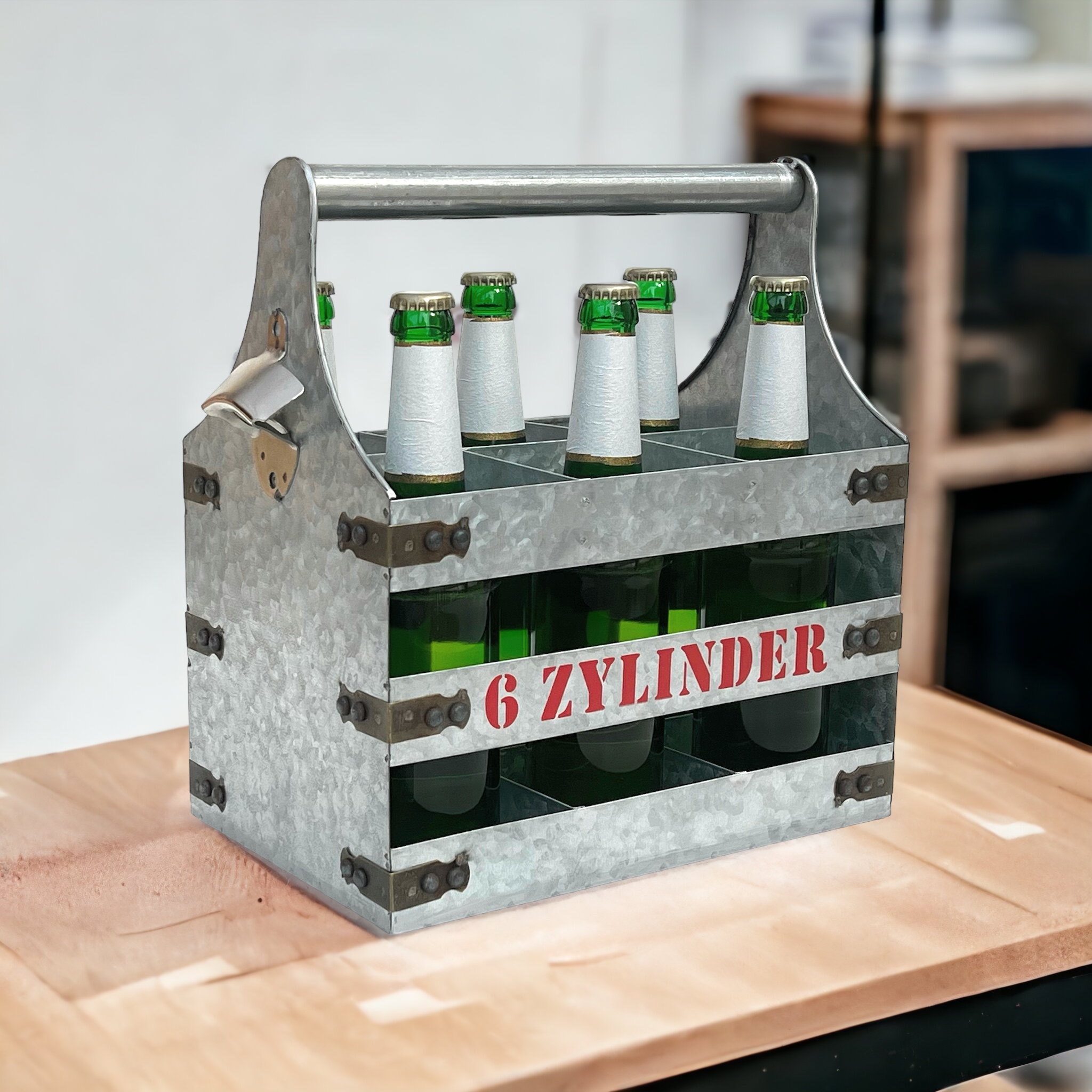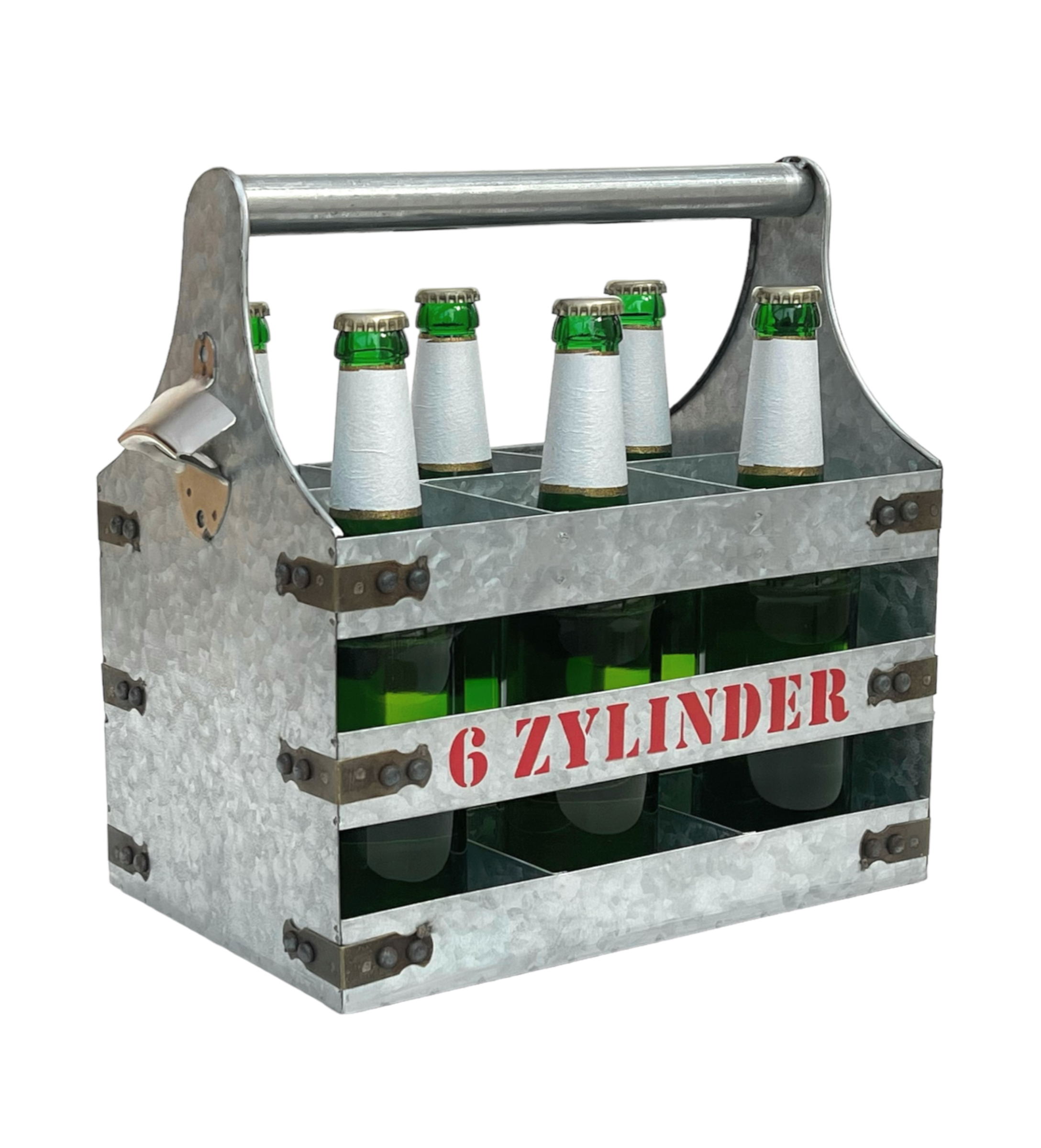 The DanDiBo metal beer carrier with bottle opener and 6 cylinders/V6 label on both sides is perfect for any garden party, picnic, BBQ or outing.